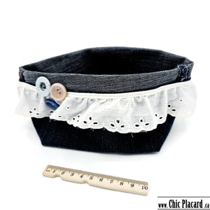 Petite pochette qui se refermables grâce à deux cordons coulissants pour y mettre de la monnaie, des bijoux ou d'autres petits accessoires.