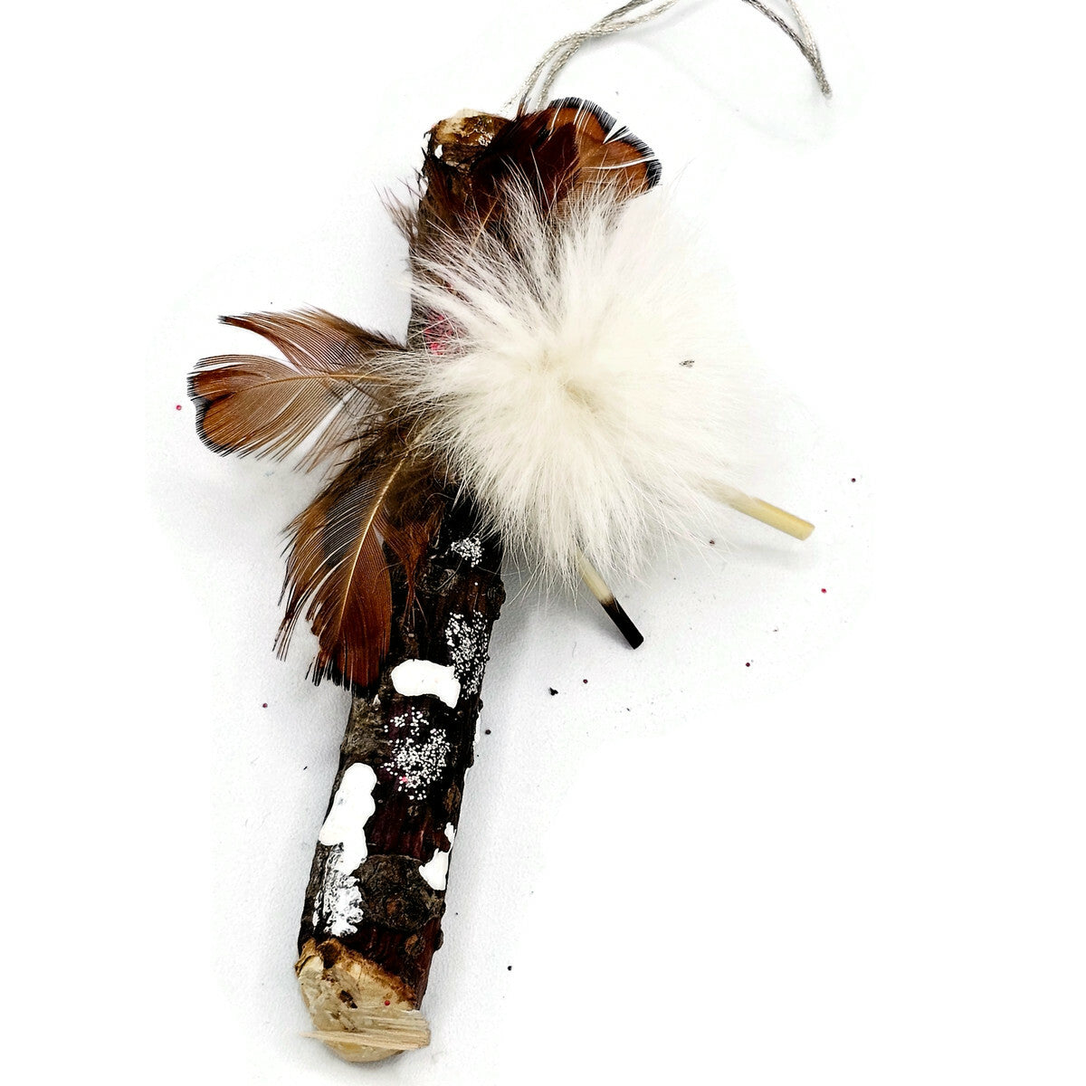 Ornement unique créé par Francine Lasalle à partir de matériaux ramassé dans la nature. À offrir en cadeau, pour suspendre dans votre arbre de Noël, le déposer sur votre table pour agrémenter la présentation, l'accrocher à un cadeau, à une bouteille de vin... L'important est de le partager en gage d'amitié.