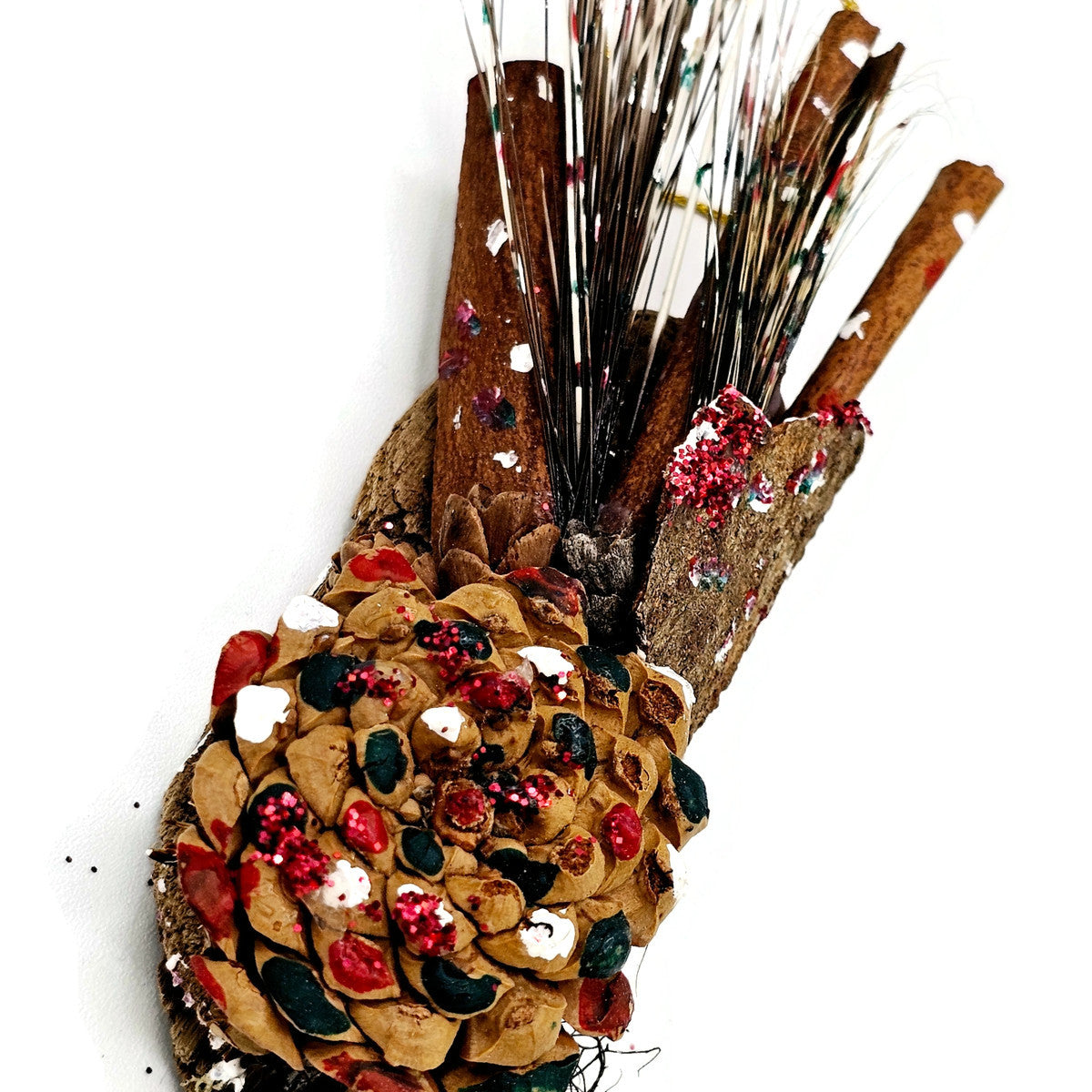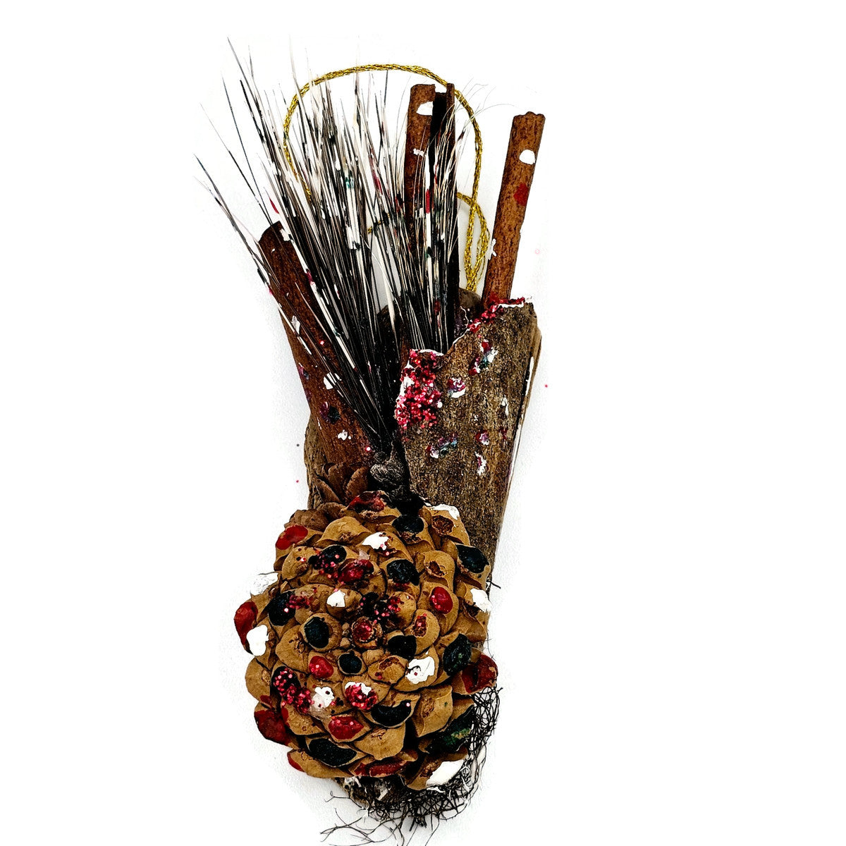 Ornement unique créé par Francine Lasalle à partir de matériaux ramassé dans la nature. À offrir en cadeau, pour suspendre dans votre arbre de Noël, le déposer sur votre table pour agrémenter la présentation, l'accrocher à un cadeau, à une bouteille de vin... L'important est de le partager en gage d'amitié.