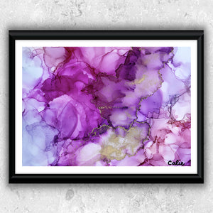 Impression haute qualité sur carton blanc mat ou papier recyclé épais blanc, une reproduction d'une oeuvre originale signée Calie. L'oeuvre originale a été faite avec de l'encre à l'alcool.