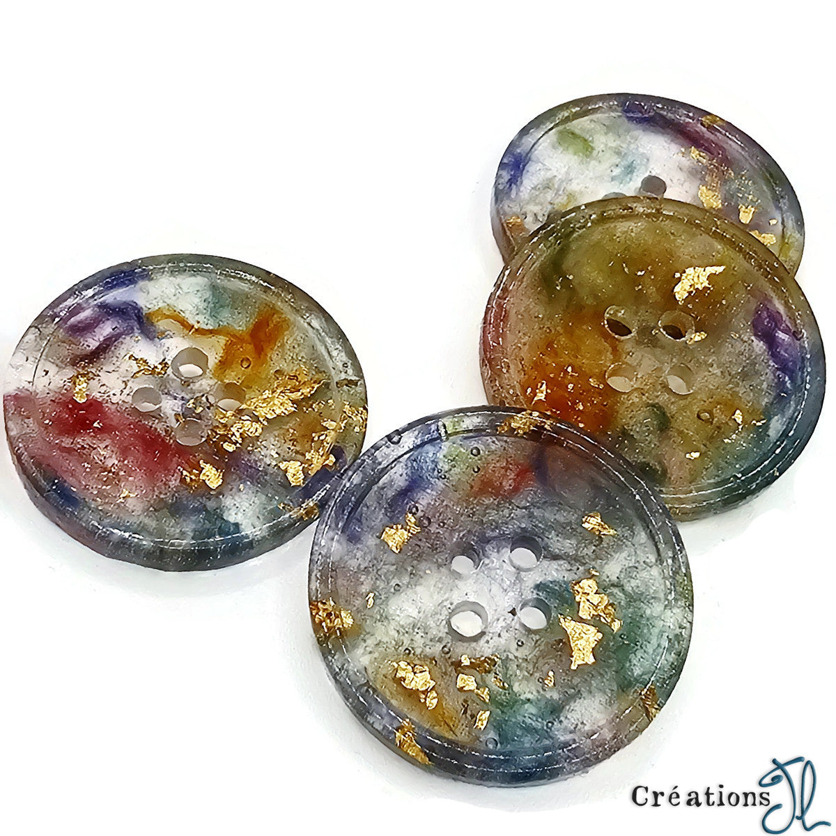 Bouton 38mm à l'unité - Party de couleur et dorure - par Créations JL