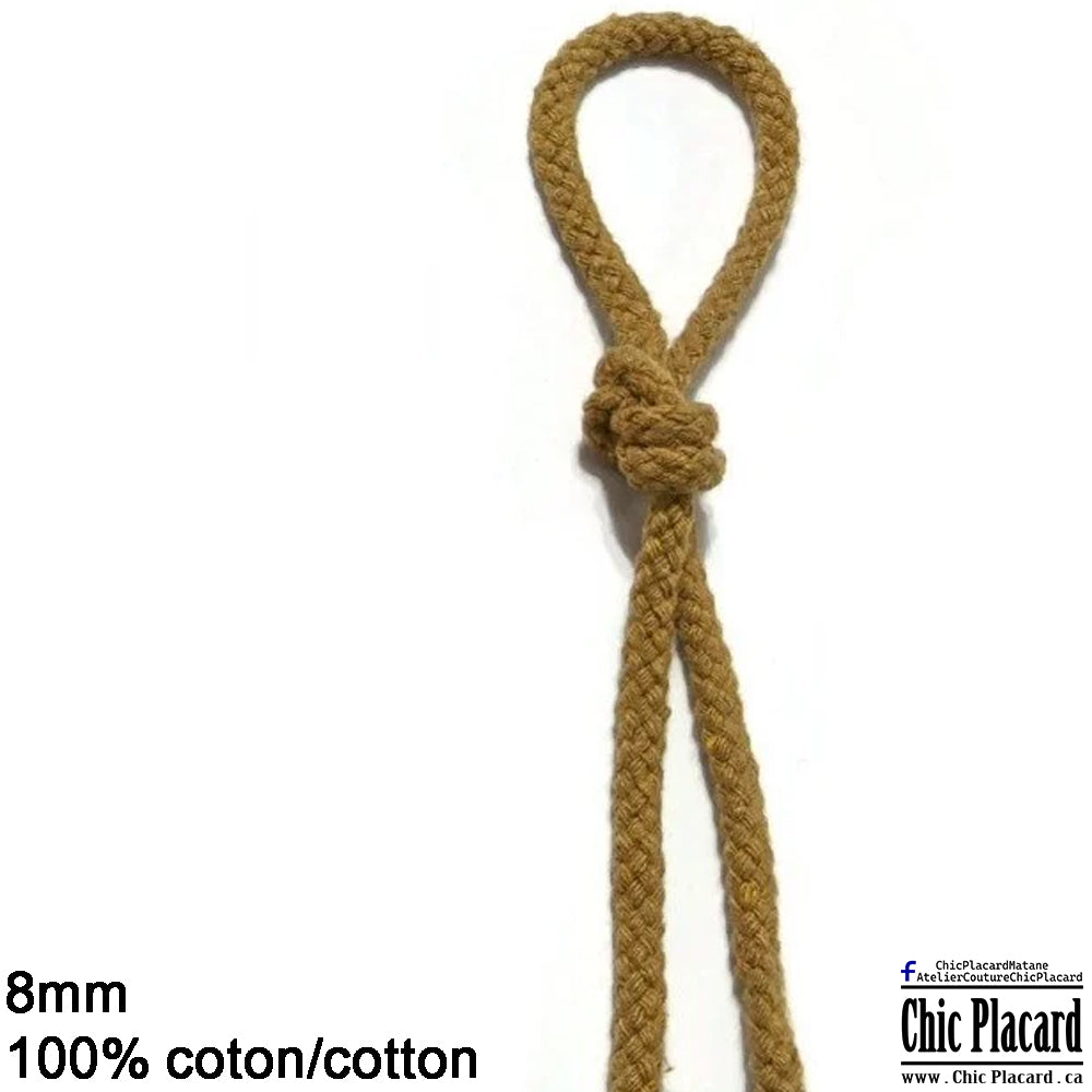 Cordon de coton tressé 8mm - Brun chameau (au 1/2m)