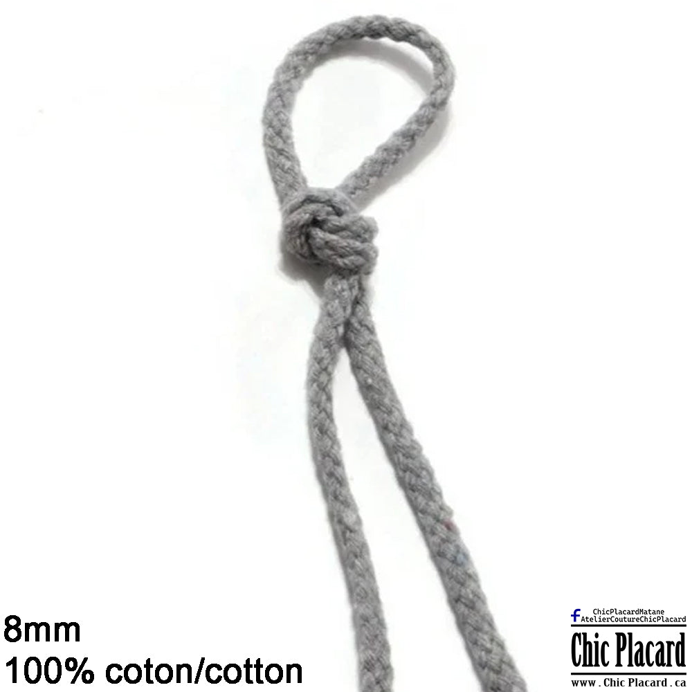 Cordon de coton tressé 8mm - Gris pâle