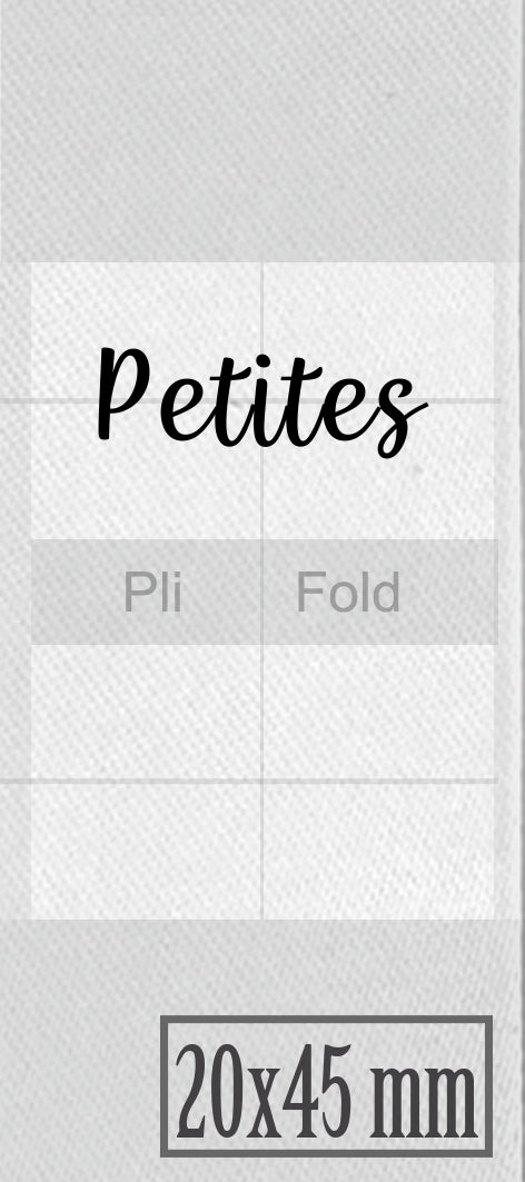 Exemple, vous cochez deux cases, vous aurez 50 étiquettes de chaque taille choisie. Vous en cochez 5, vous en obtiendrez 20 de chaque. De plus, considérez que chaque ruban, une fois coupé en 2, vous donne deux étiquette de cette taille-là.