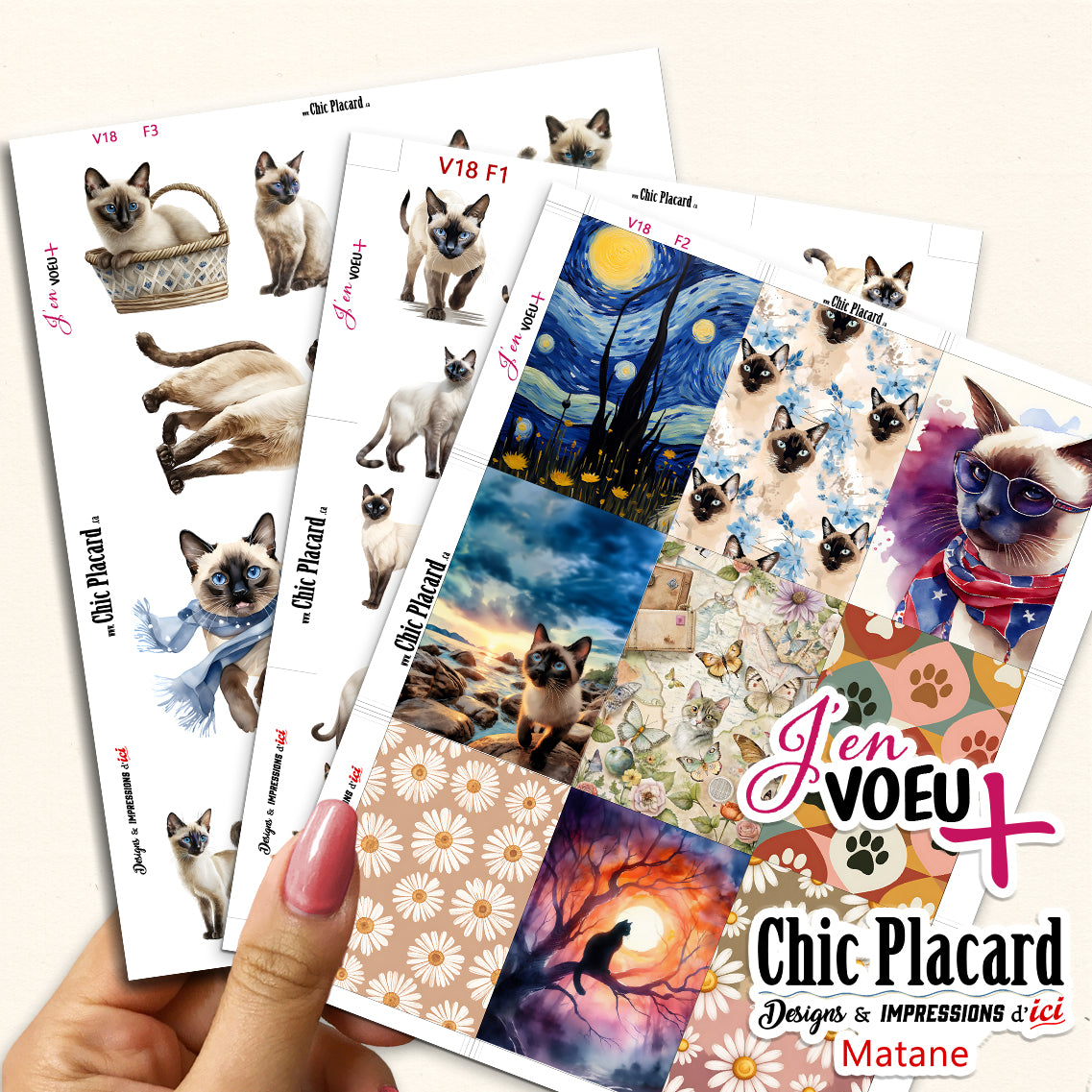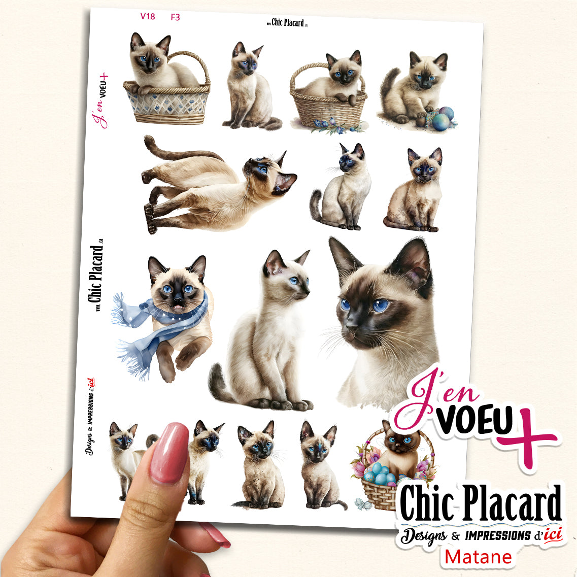 V18 Chats Siamois - J'en voeux + cartons à découper