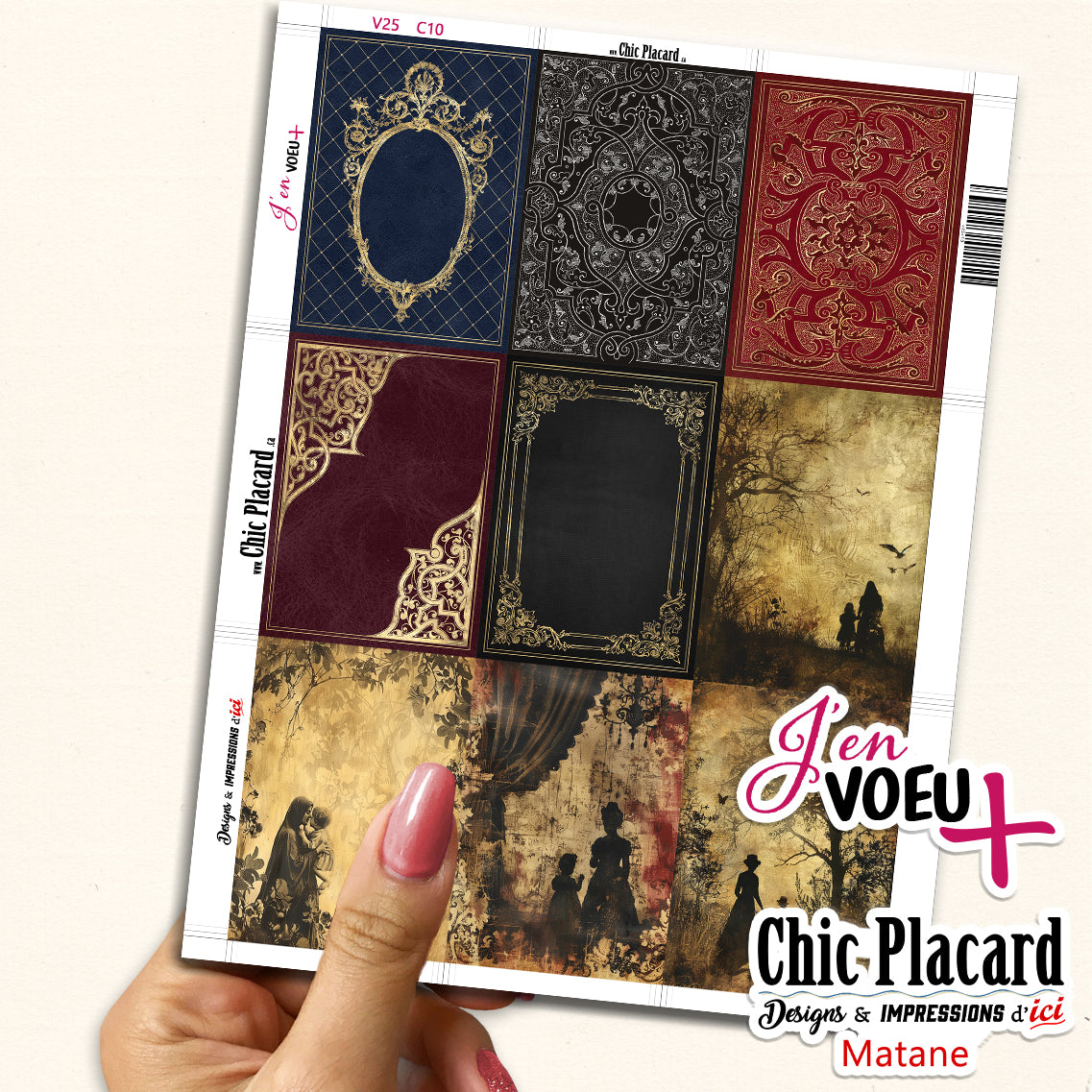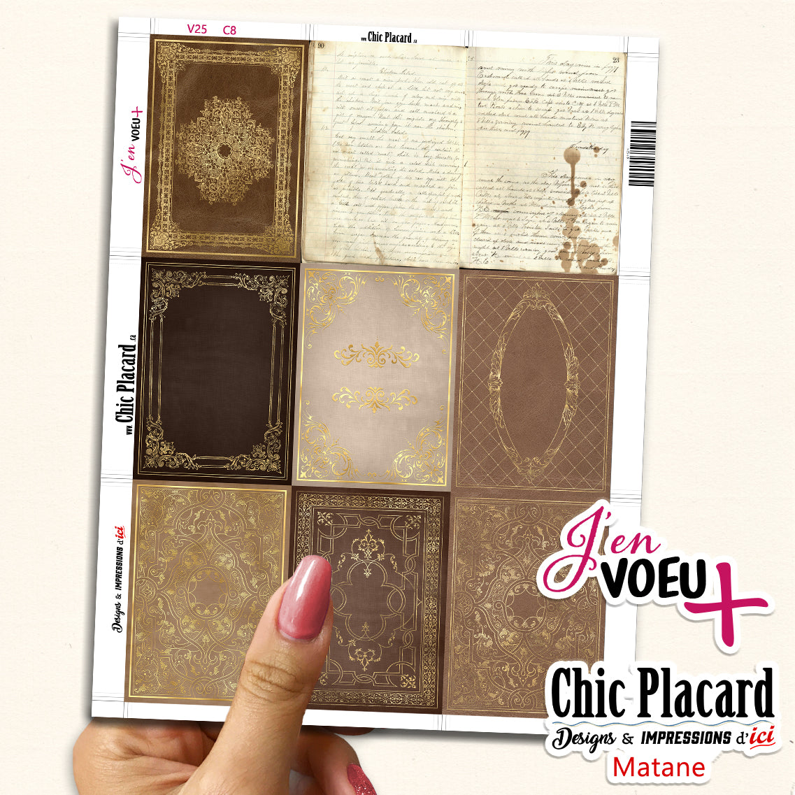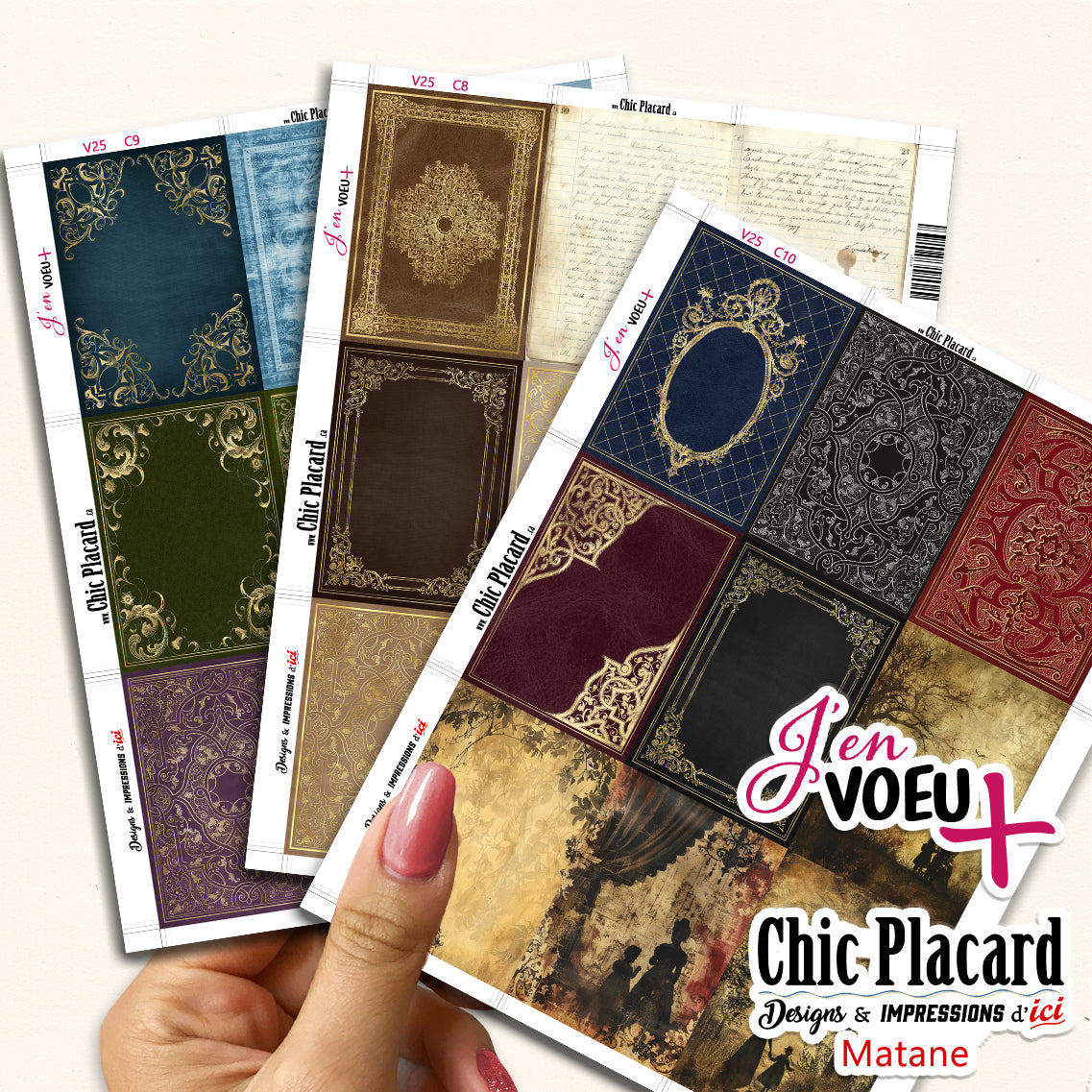 V25 Vieux papiers, bouquins et cadres : J'en voeux + carton à découper