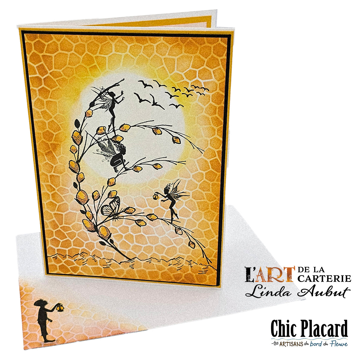 Carte de voeux fabriquée en scrapbooking par Linda Aubut par étampage à encre.