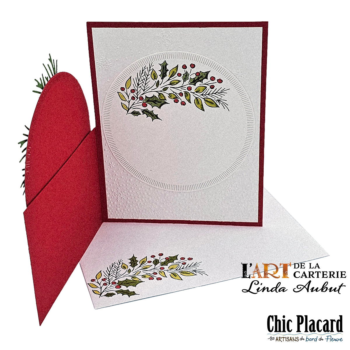 Carte de voeux fabriquée en scrapbooking par Linda Aubut. Différentes techniques ont été utilisées pour créer ce petit chef d'oeuvre : découpe, estampage, superposition, etc...
