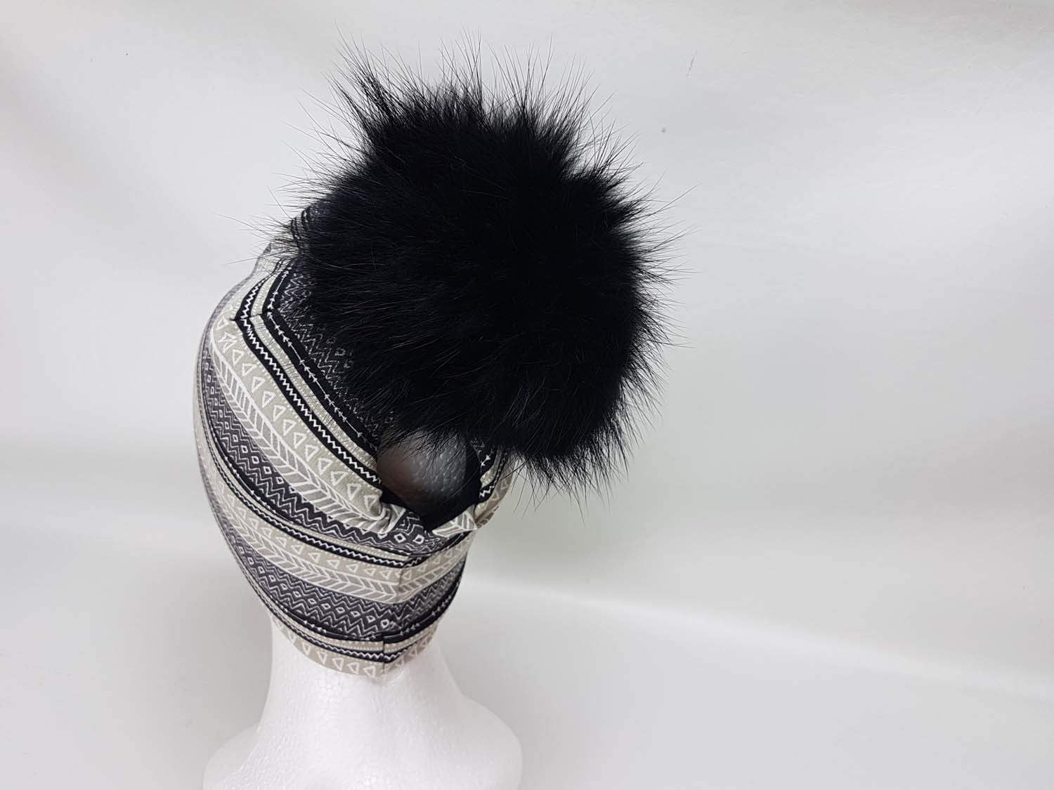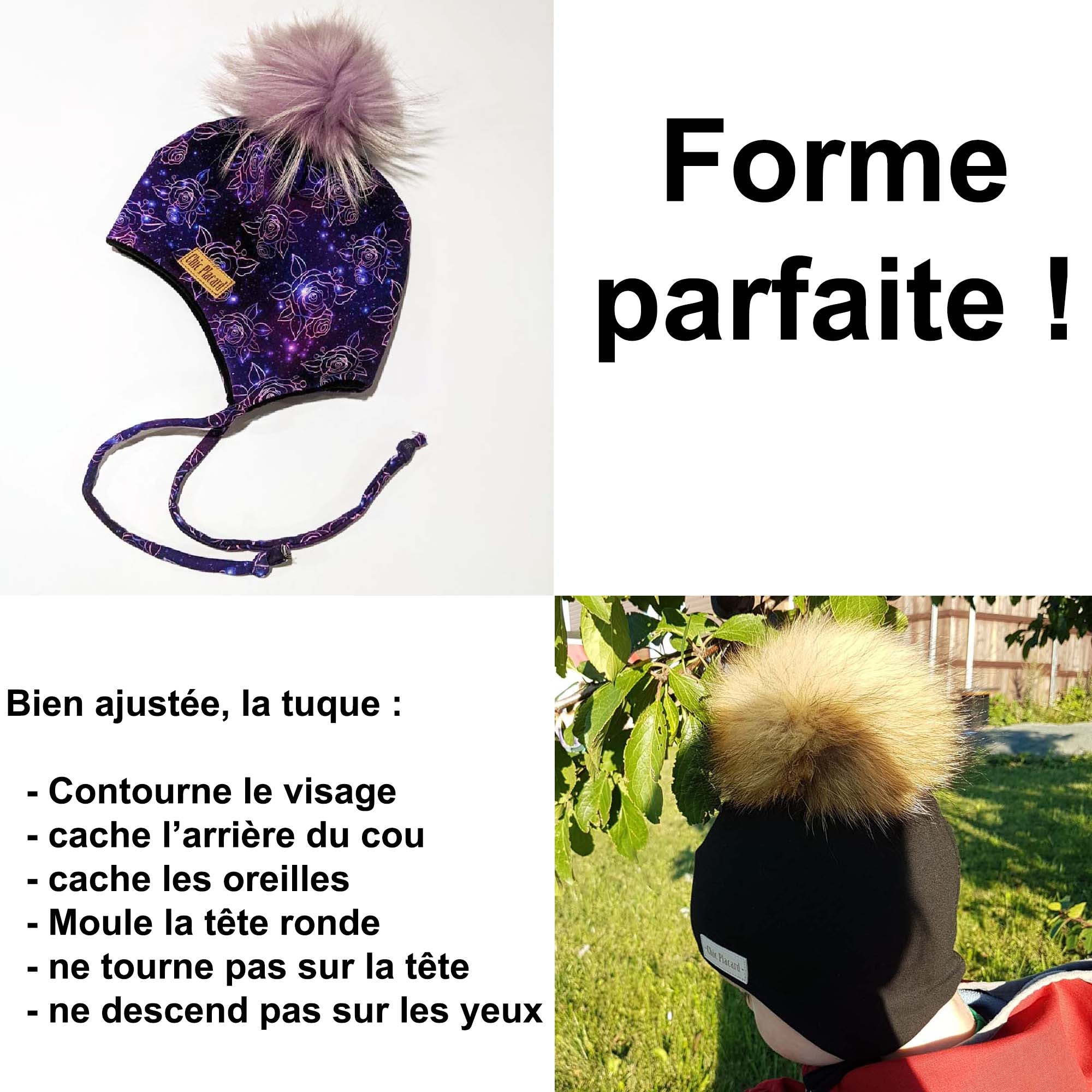 - Option pour queue de cheval derrière la tête et possibilité d'ajouter aussi un pompon