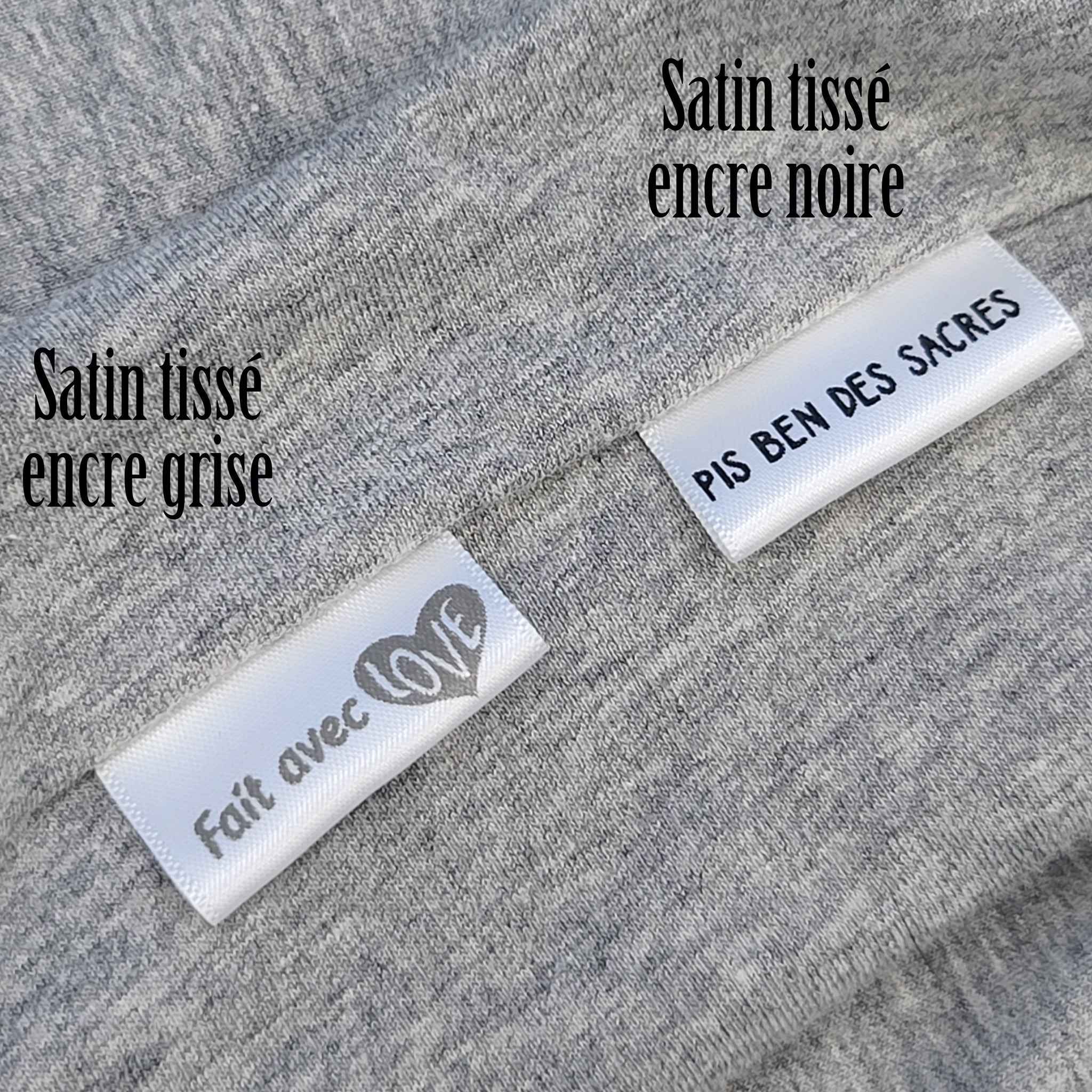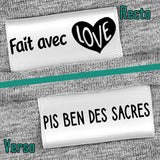 Fait avec love pis ben des sacres - Satin tissé blanc & encre noire