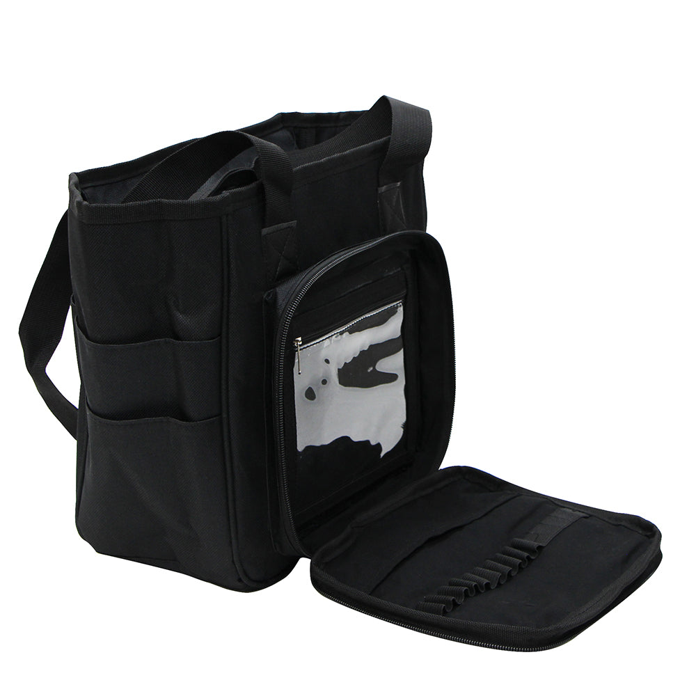 Le fourre-tout à tricot VIVACE est parfait pour garder le fil à tricoter et les accessoires organisés à la maison ou en déplacement! En plus du grand compartiment principal, ce sac bénéficie de 4 poches latérales (2 de chaque côté), 3 poches arrière et une pochette zippée. La poche avant zippée possède 15 porte-aiguilles élastiques et une poche transparente zippée pour contenir les petits accessoires de tricot - ce sac a assez de rangement pour toutes vos fournitures de tricot! Le compartiment principal est accessible par une fermeture à glissière sur le dessus du sac et possède 4 pochettes à élastique pour garder le fil à tricoter et les autres accessoires bien rangés. Le haut du sac est équipé de 4 cillets métalliques qui permettent d’y passer le fil à tricoter lorsque le sac est fermé - tout en gardant le fil à tricoter propre que vous tricotiez à la maison ou en déplacement. Le sac mesure 30cm de large, 28cm de haut et 14cm de profondeur.