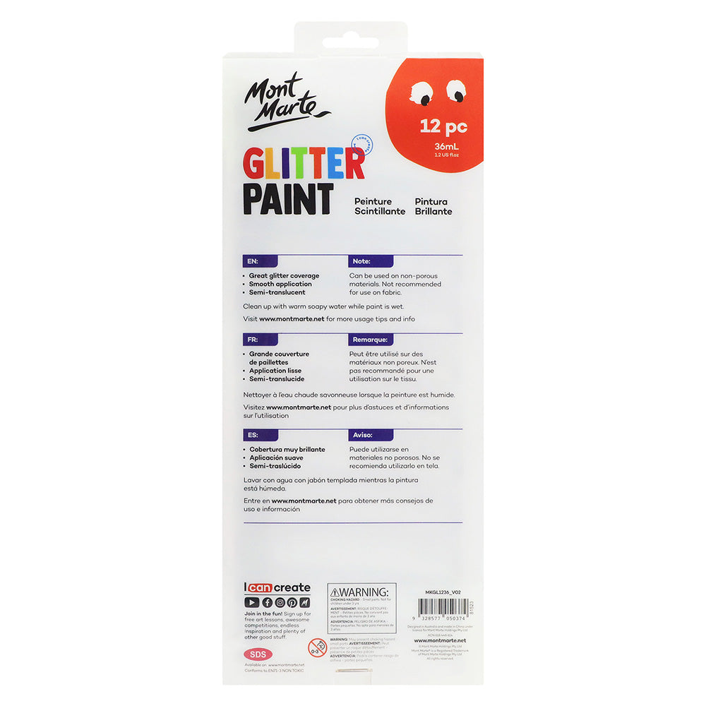 Laissez votre petit artiste briller avec notre ensemble de peinture pailletée de 12 mcx. Cet ensemble de peinture pailletée à base d'eau offre une grande couverture pailletée et une application lisse qui facilite la création. Les couleurs pailletées brillantes ont un fini semi-translucide qui ajoute de l'éclat et de la brillance aux bricolages et aux projets. Le nettoyage est facile, appliquez simplement de l'eau savonneuse tiède pendant que la peinture pailletée est encore humide pour l'enlever.