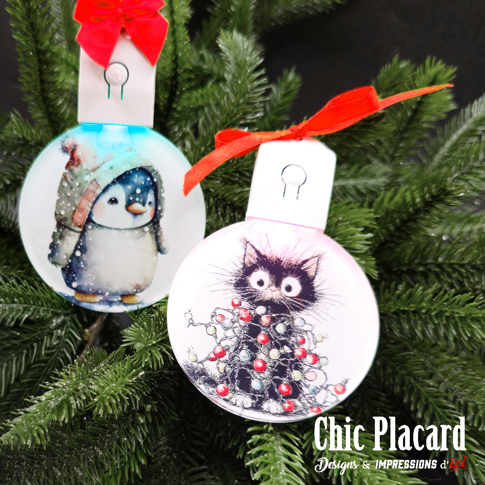 Petite boule lumineuse imprimée par sublimation à l'atelier Chic Placard à Matane.