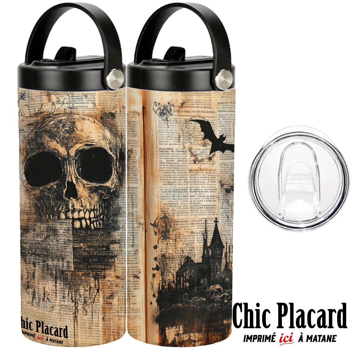 Bouteille imprimée par sublimation avec un deign par Chic Placard à l'atelier de Matane.