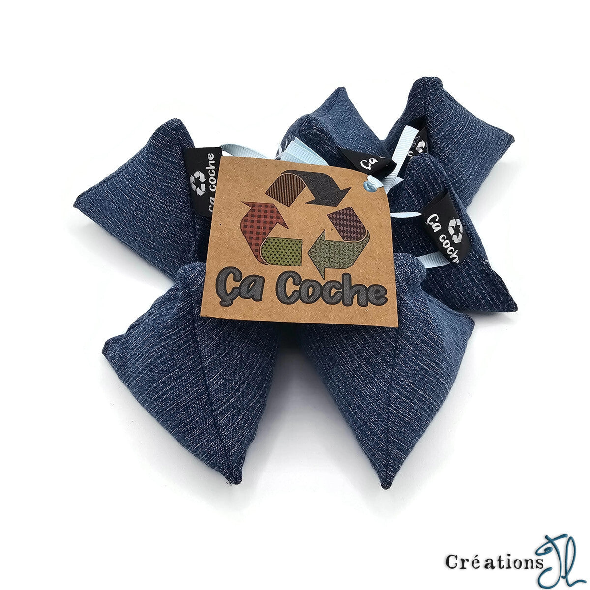 - 100% Fibres inconnues : fabriqué de tissus récupérés de jeans et coton tissé.