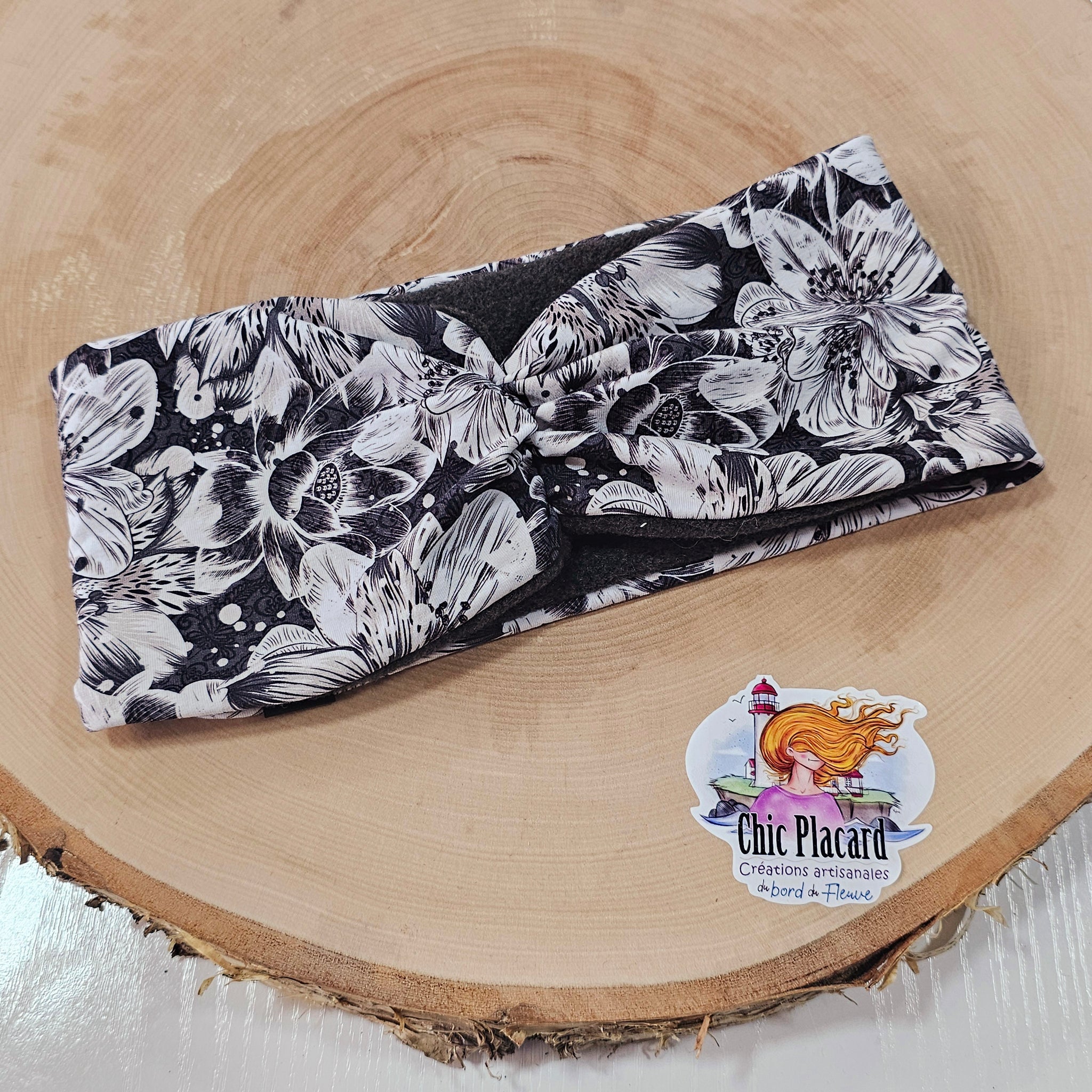 Fleurs en noir & blanc - Bandeau doublé à noeud décoratif