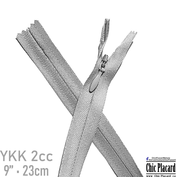 Gris fumée - zip invisible YKK 2cc 9''/23cm