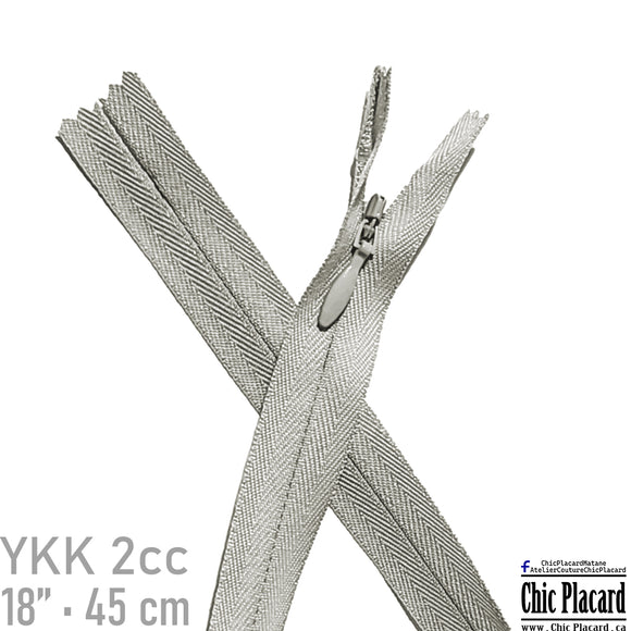 Gris fumée - zip invisible YKK 2cc 10''/25cm