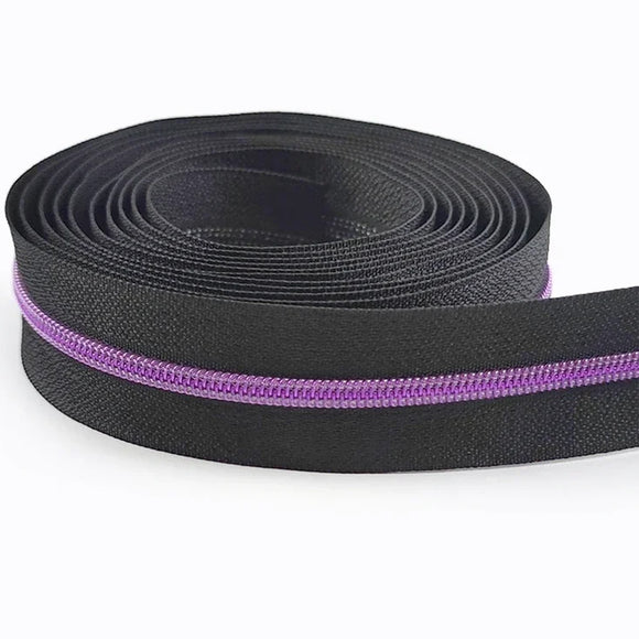 Noir & violet - Zipper Nylon #5 (au 1/2m)