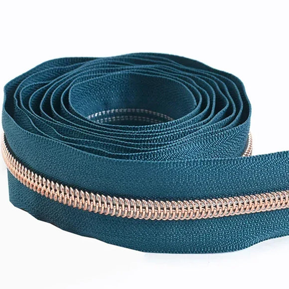 Sarcelle & or rose - Zipper Nylon #5 (au 1/2m)