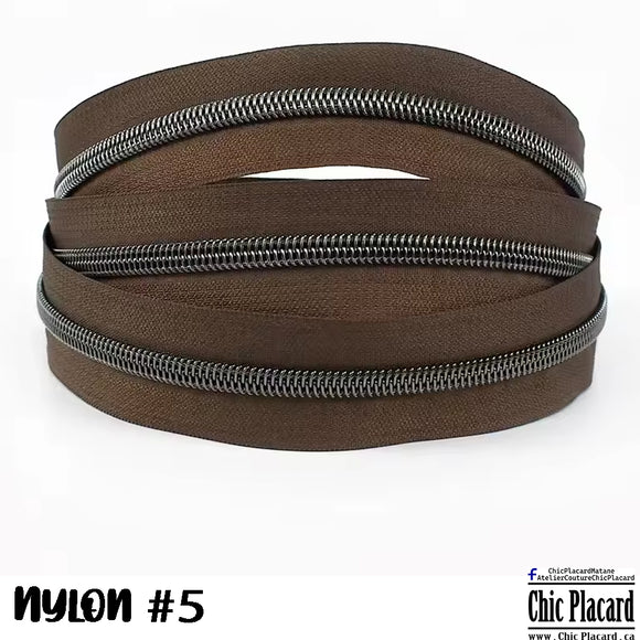 Brun- Zipper Nylon #5 (au 1/2m)