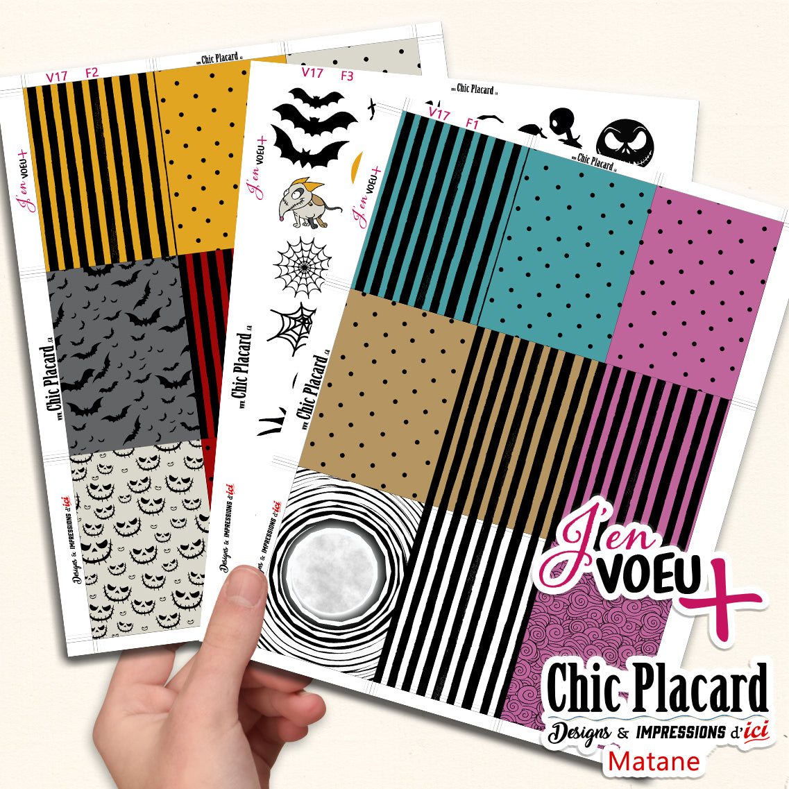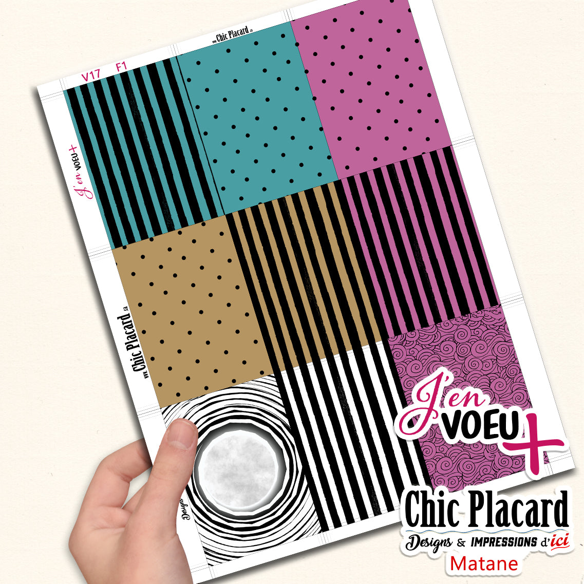 Ensemble de 3 cartons imprimés pour la création de cartes d'artiste à échanger / ATC en scrapbooking. Chaque ensemble inclus :