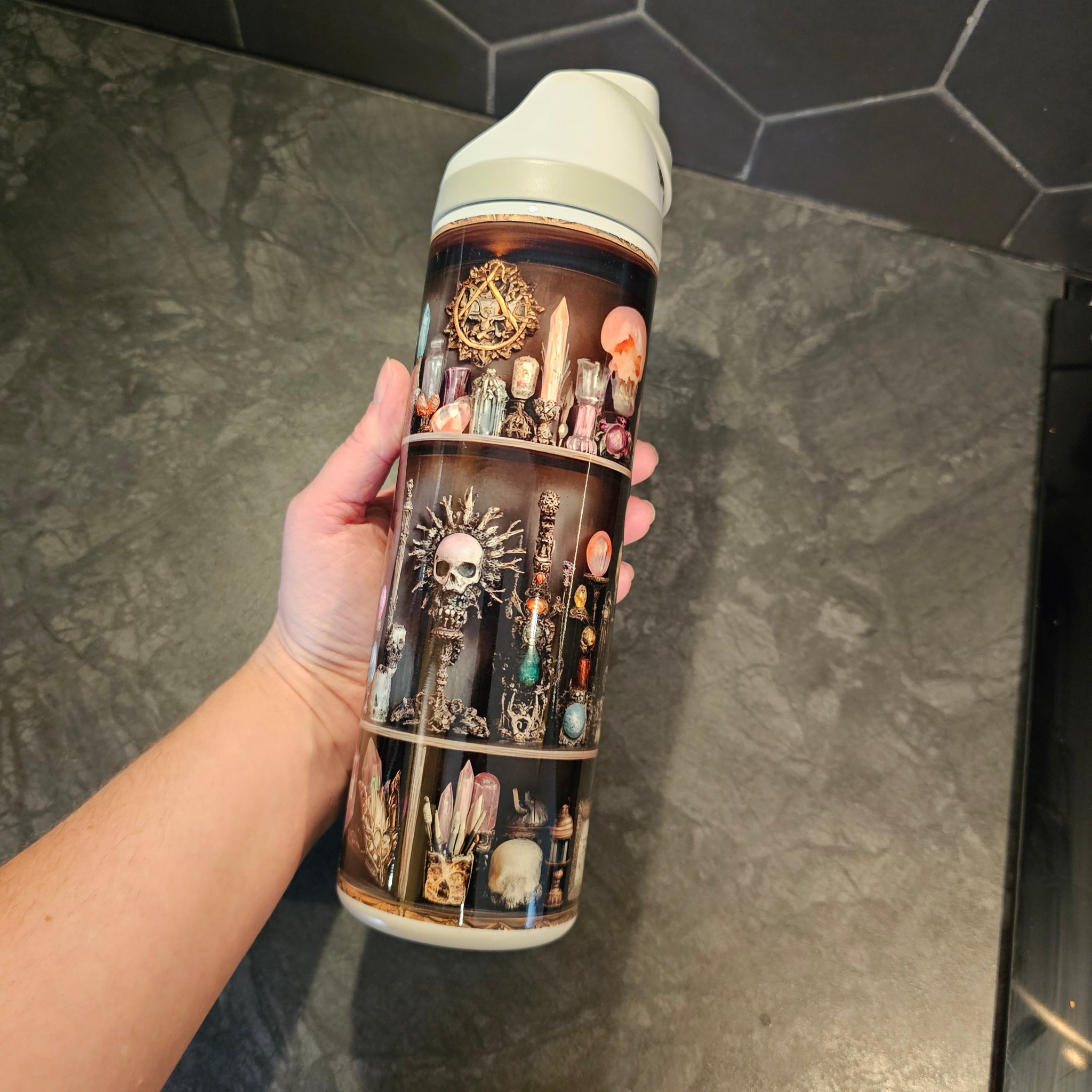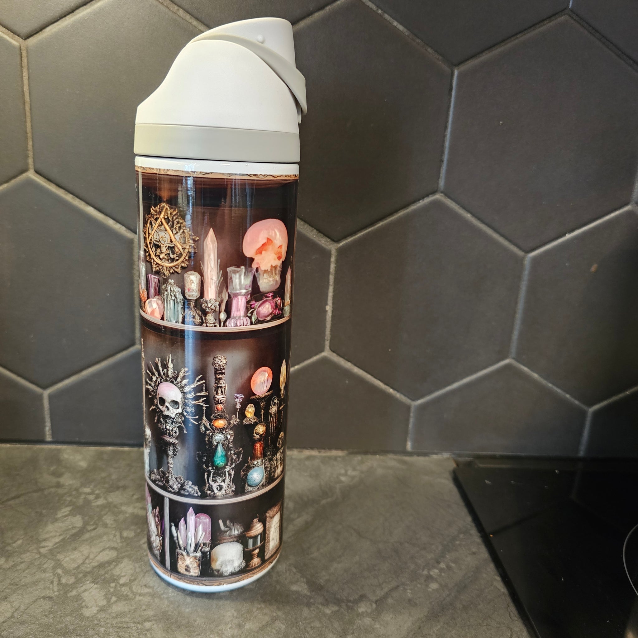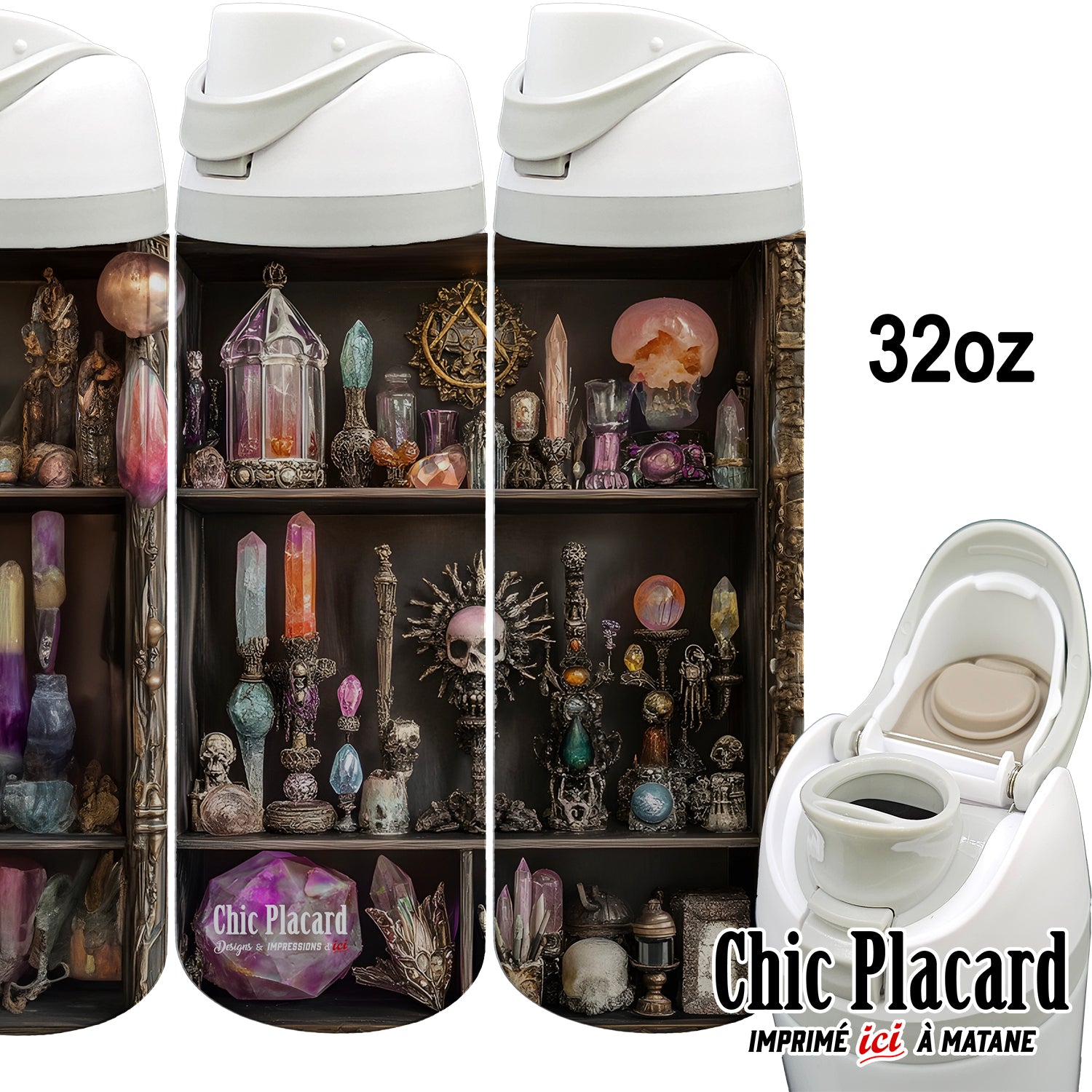 Gobelet en acier inoxydable décoré avec une illustration appliquée par sublimation à l'atelier Chic Placard. L'image est une conception de Chic Placard.