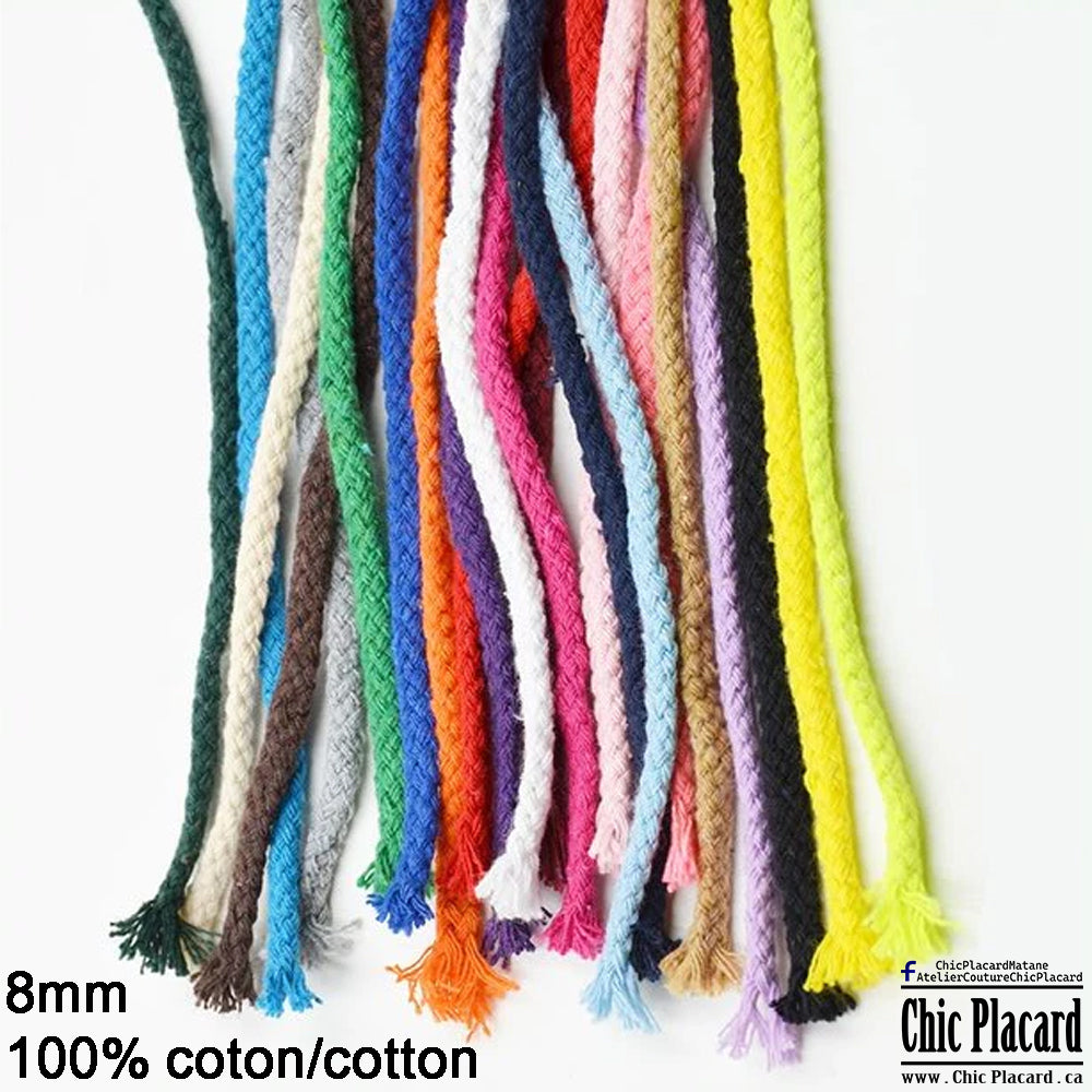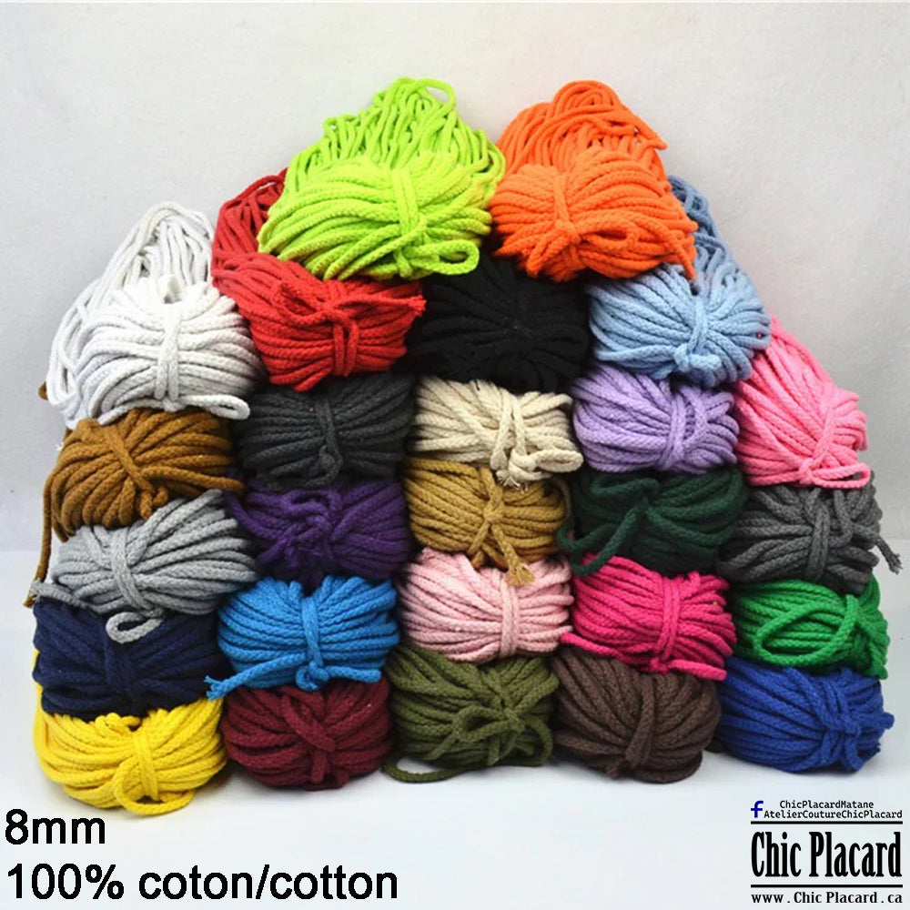 MIX COULEURS - Cordon de coton tressé 8mm