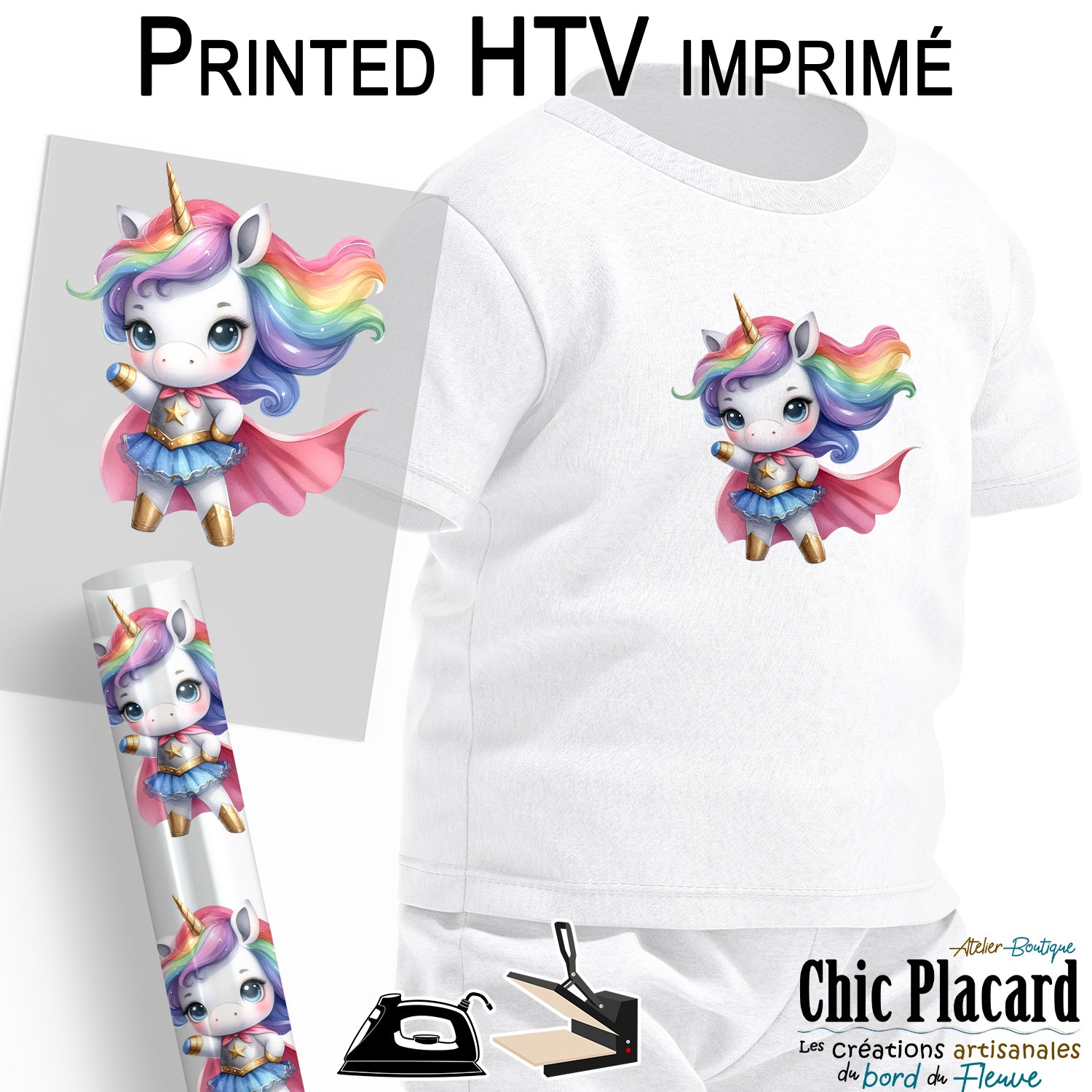 Le vinyle thermocollant (HTV) est une technique pour décorer des vêtements ou autre surface en utilisant la chaleur et la pression pour le coller. L'image est imprimée et découpée à l'aide d'une imprimante découpeuse professionnelle qui va découper les contours de l'image. Par la suite, on retire le vinyle en excédent (démasquage) tout autour de notre image pour ne conserver que la surface à appliquer.