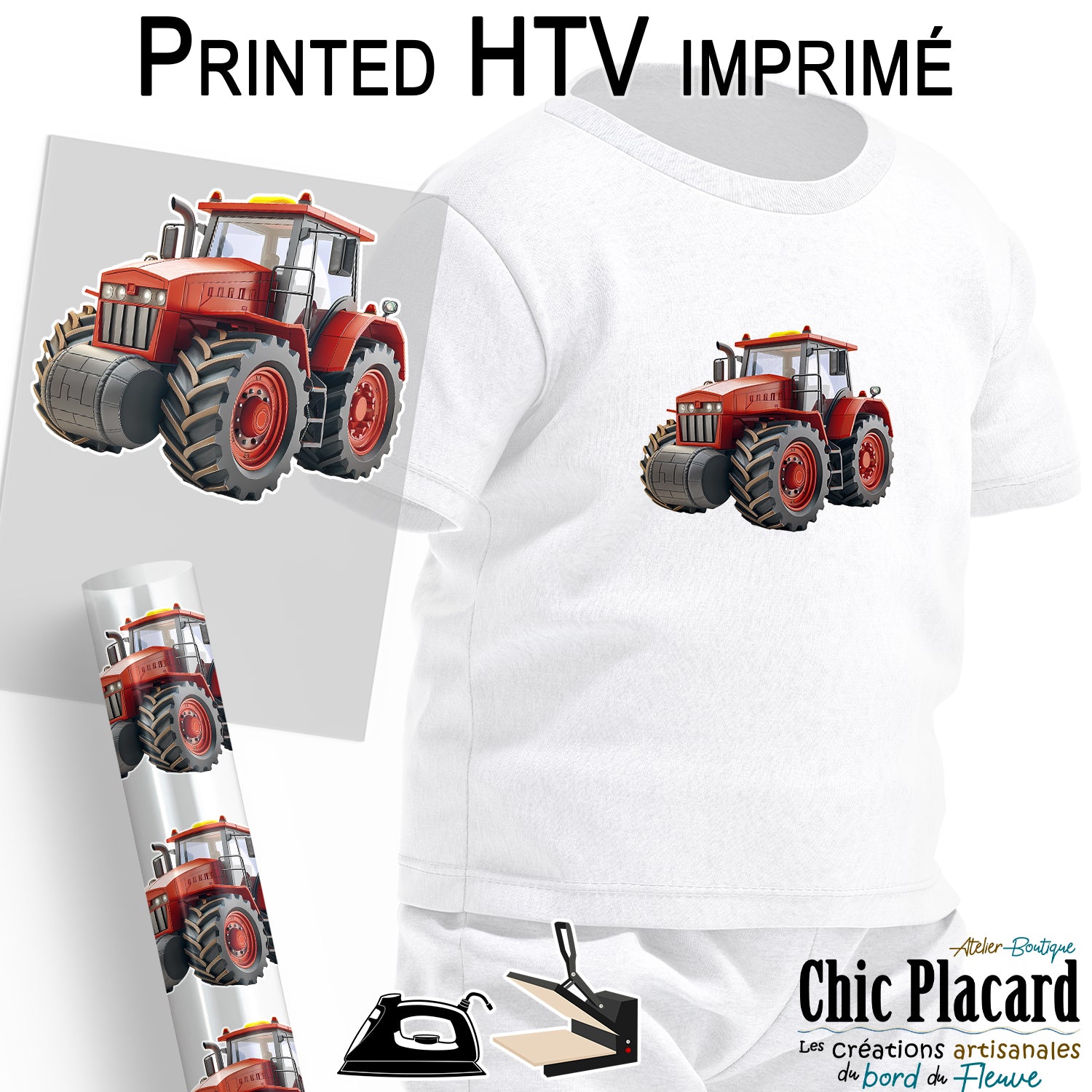 Tracteur rouge - HTV imprimé