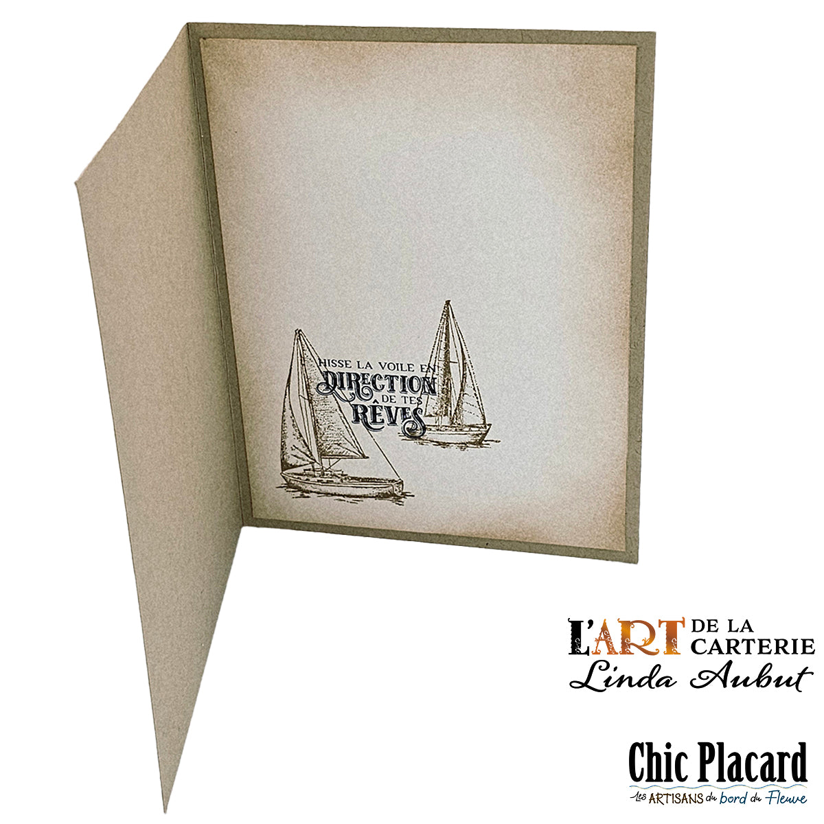 Carte de voeux fabriquée en scrapbooking par Linda Aubut. Différentes techniques ont été utilisées pour créer ce petit chef d'oeuvre : découpe, estampage, superposition, etc...