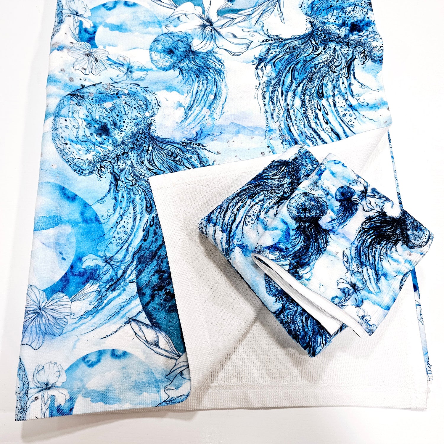 Serviette à mains absorbante et à séchage rapide, douce sur la peau, dont la face avant a été imprimée par sublimation ici au Québec.