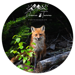 Coaster displaying a photo of a fox, taken by Yann Gonthier of Drone Terra Photographies this spring 2024 in the Gaspésie National Park,