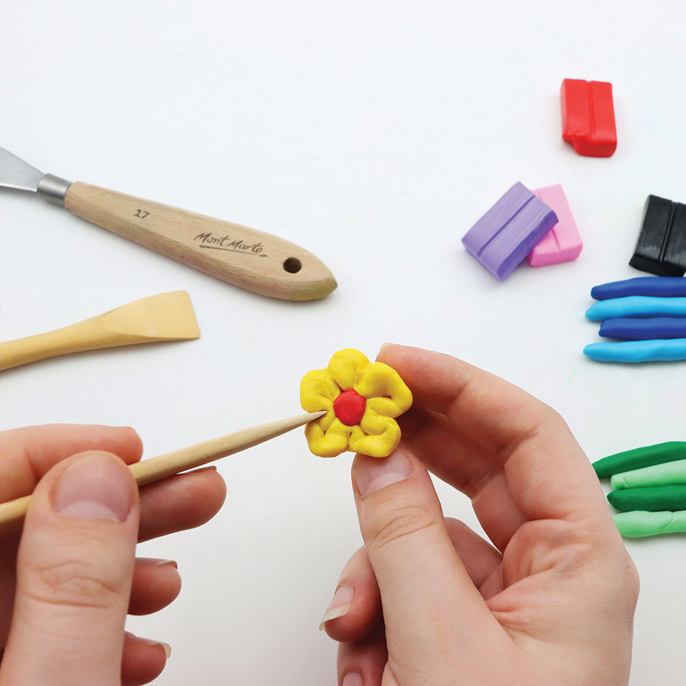 Pour une grande variété de techniques d'argile de polymère, l'argile Make’n Bake en 10 mcx peut être utilisée dans un assortiment d'artisanat comme la bijouterie, la décoration intérieure, le rotin, le perlage, la poterie et le collimage. L'argile de polymère Mont Marte Make'n'Bake est facile à utiliser, malléable, non-toxique et synthétique qui peut être façonnée puis durcie dans un four régulier à la maison.
