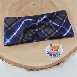 Carreauté bleu - Bandeau doublé à noeud décoratif