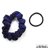 Quality elastic inside that will help keep its shape so the scrunchie stays in place. You can usually do 2 wraps by tying it around your duvet, depending on how much hair you have.