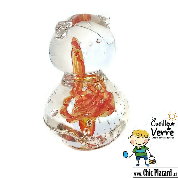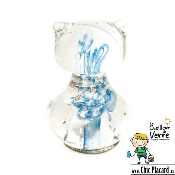 Full glass in the shape of a cat and colored, made by Le Cueilleur de verre. Ideal as a decoration in a well-lit area or to place on a light base to make a lovely little night light.