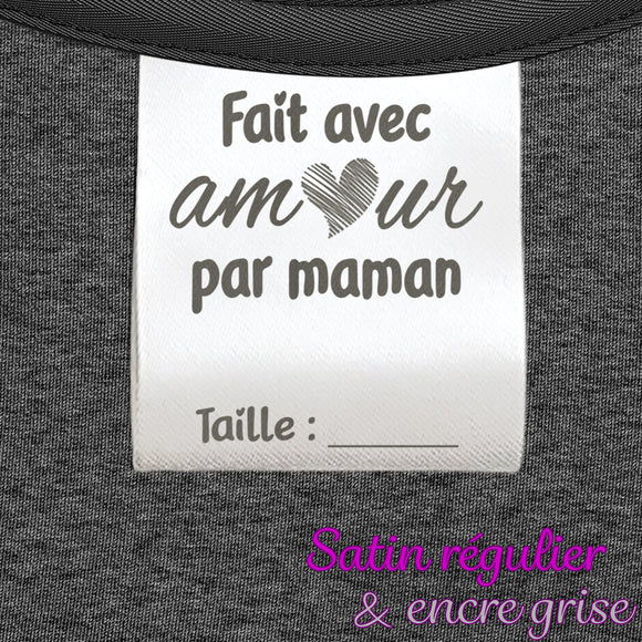 Tags: made with love by mom (80mm) Regular satin & gray ink