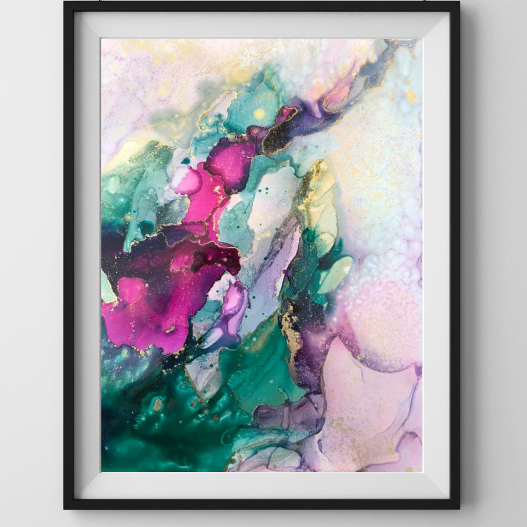 Impression haute qualité sur carton blanc mat ou papier recyclé épais blanc, une reproduction d'une oeuvre originale signée Calie.  L'oeuvre originale a été faite avec de l'encre à l'alcool.