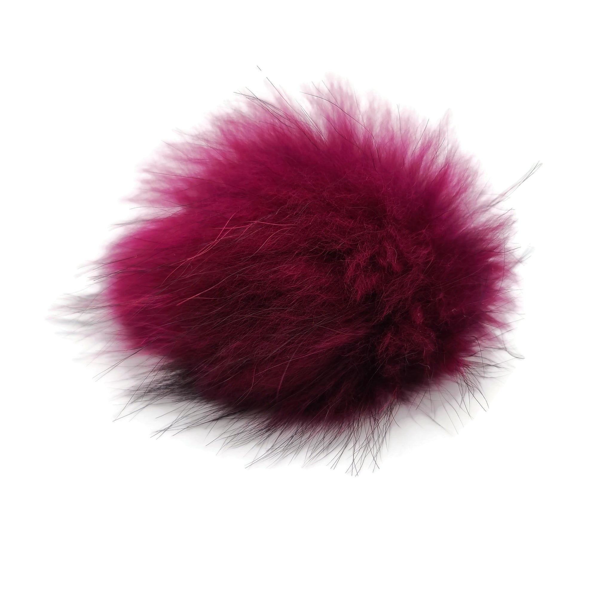 Maintenance :  You can use a small brush to restore volume to your pompom.  If necessary, the pompom can be shampooed gently by hand with a mild soap, in cold water, then dried with a hair dryer on warm/cold air.