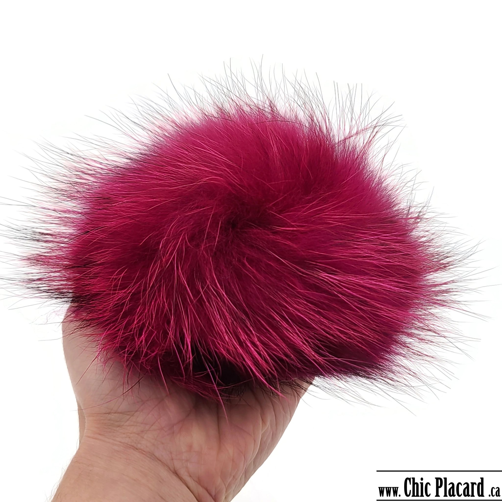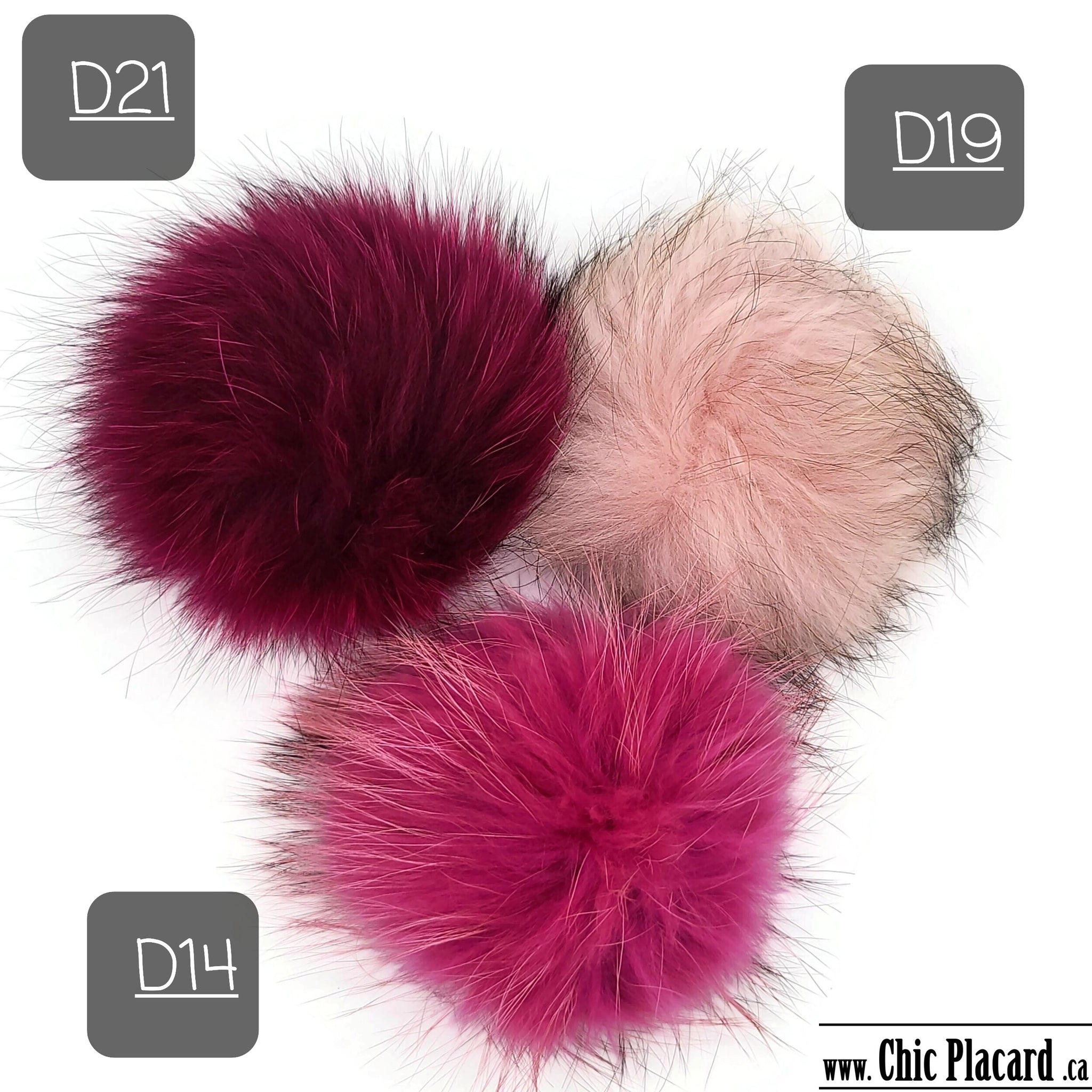 Very nice large raccoon fur pom poms.  Natural fur pompoms are a durable product that will stay beautiful for a very long time.  In the cold, they have the property of expanding because each hair straightens.  You will therefore not need to buy a pompom next season as with synthetic pompoms.