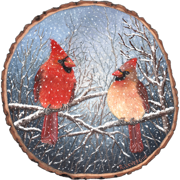 Cette oeuvre de l'artiste matanais Richard Levesque a été peinte sur un rondin de bois séché et apprété et représente un geai bleu perché sur une branche.  Admirez les détails et les dégradés de couleurs réalisés avec grande finesse et minutie,