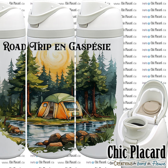 Stainless steel tumbler, illustrated by Matanaise artist Mylène Leblanc . The image was applied by sublimation by Chic Placard.