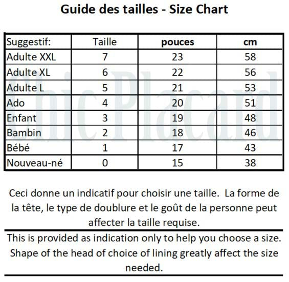 Refer to the size chart by measuring your head circumference! This is the measure that is proof of everything since it is possible for a child to have the head circumference of an adult and vice versa.