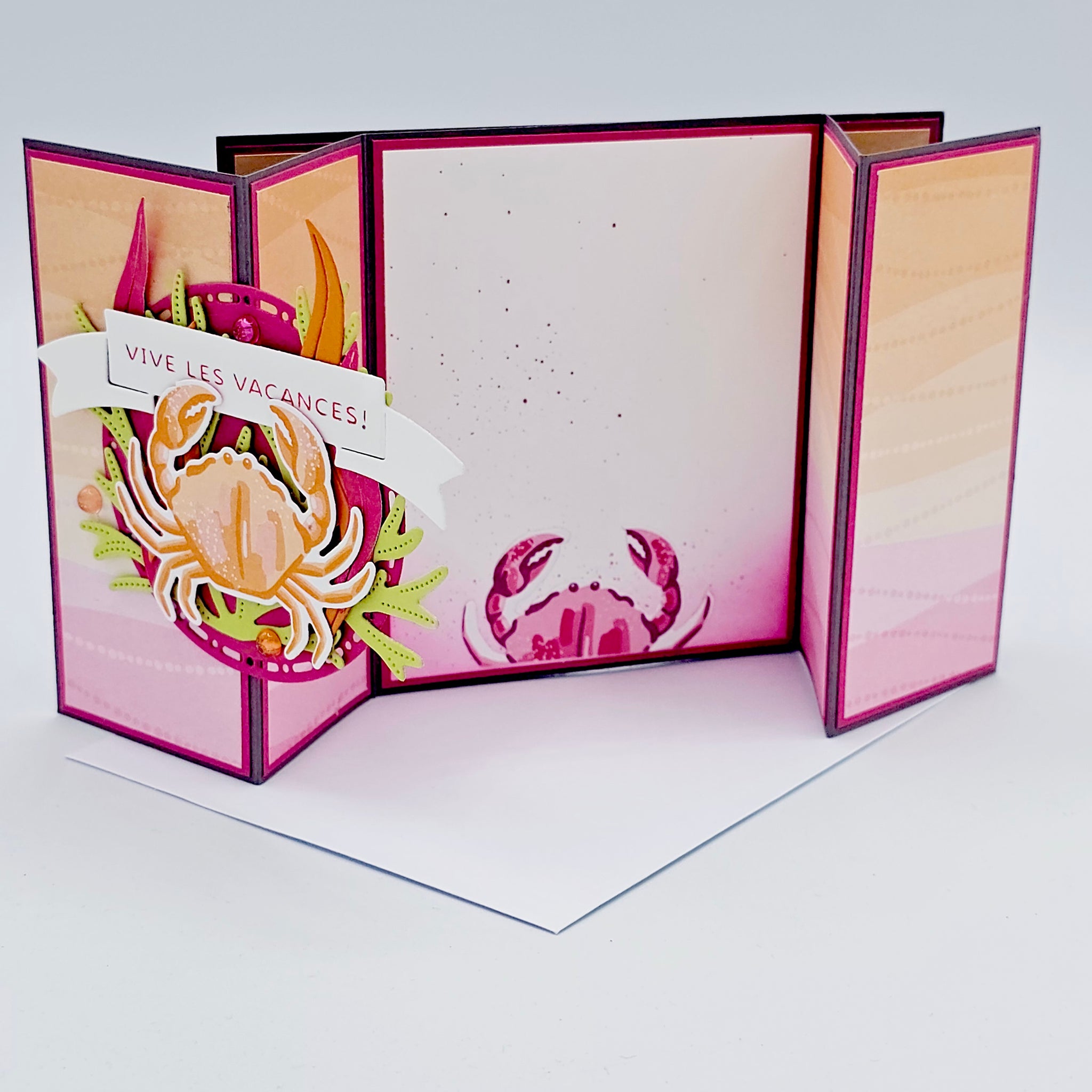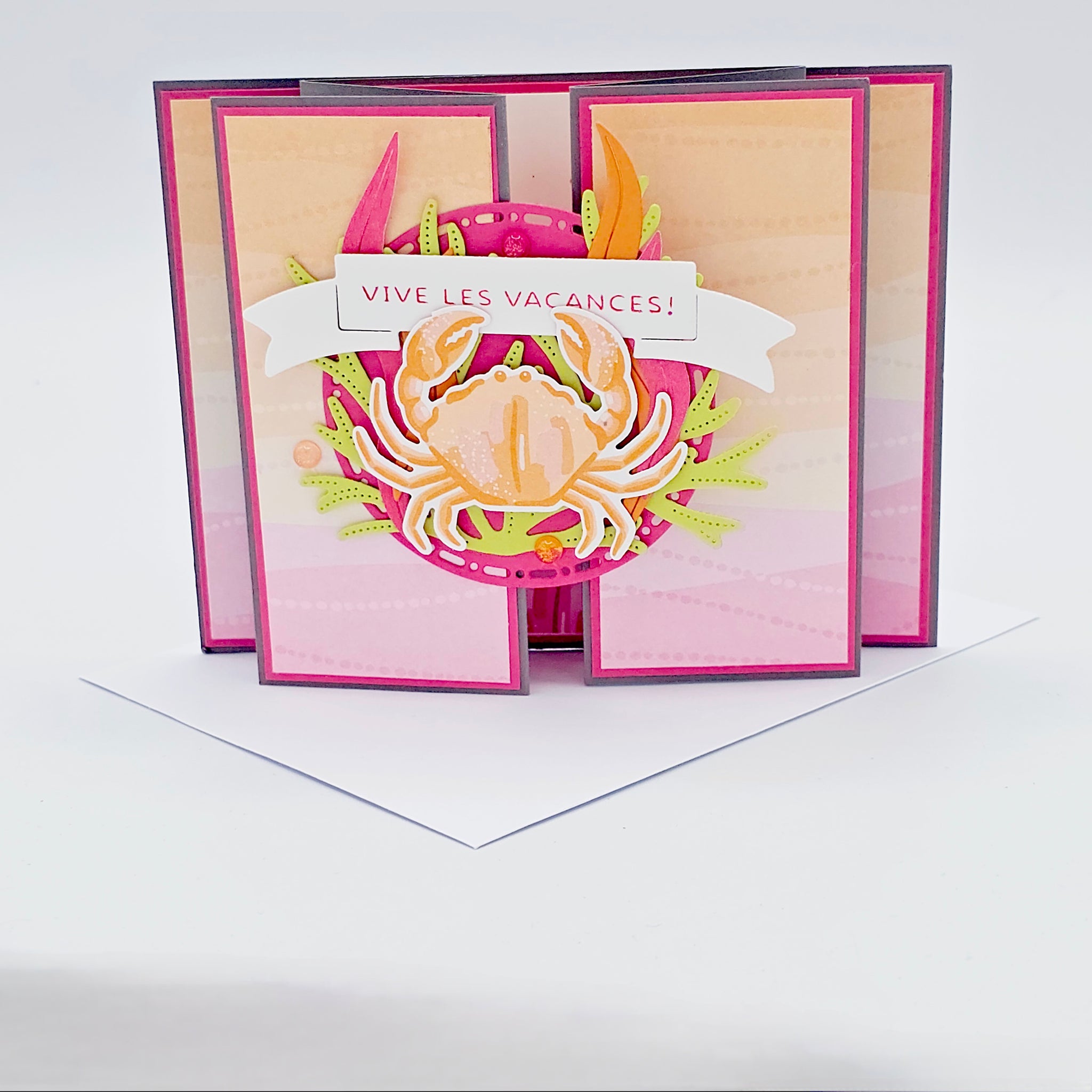 Carte de voeux fabriquée en scrapbooking par Linda Aubut. Différentes techniques ont été utilisées pour créer ce petit chef d'oeuvre : découpe, estampage, superposition, etc...