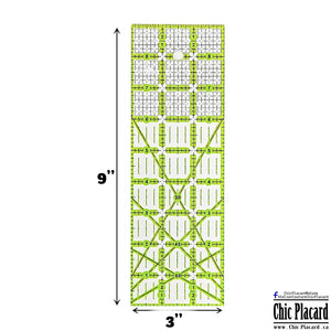La règle pour la courtepointe, la couture et l'artisanat pour utiliser avec les couteaux rotatifs et les lames droites. Marques en angle de 45 degrés pour le biais et la coupe de triangles Lignes transparentes vert néon à double vision qui semblent briller sur les tissus clairs et foncés.