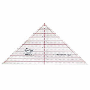 La règle parfaite pour couper les triangles extérieurs de blocs jusqu'à 10″. Essentiel pour les motifs où les blocs sont sur le point. Utilisez aussi pour couper à 90°, des triangles de quart de carré, dans des bandes et économisez sur le tissu. Facile à utiliser et très précise. Coupée au laser pour une finition précise et souple. Endos givré blanc. Grille rouge avec marquage en noir.