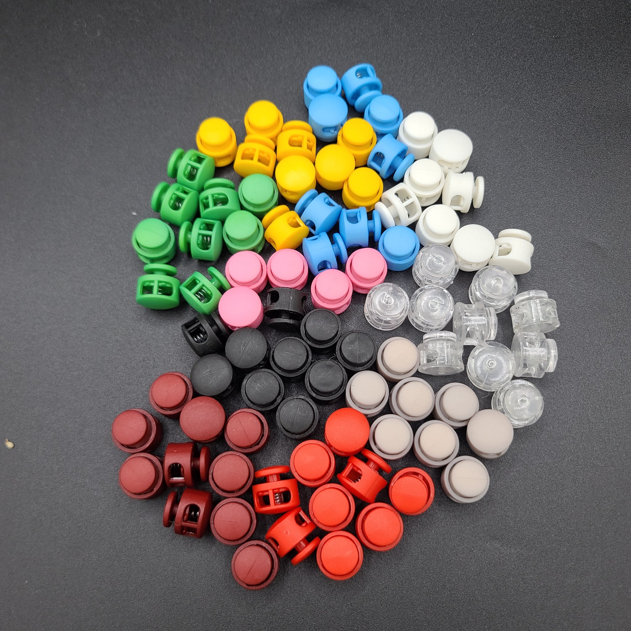 Bloque-cordons de serrage à double trou, rond, avec ressort.
