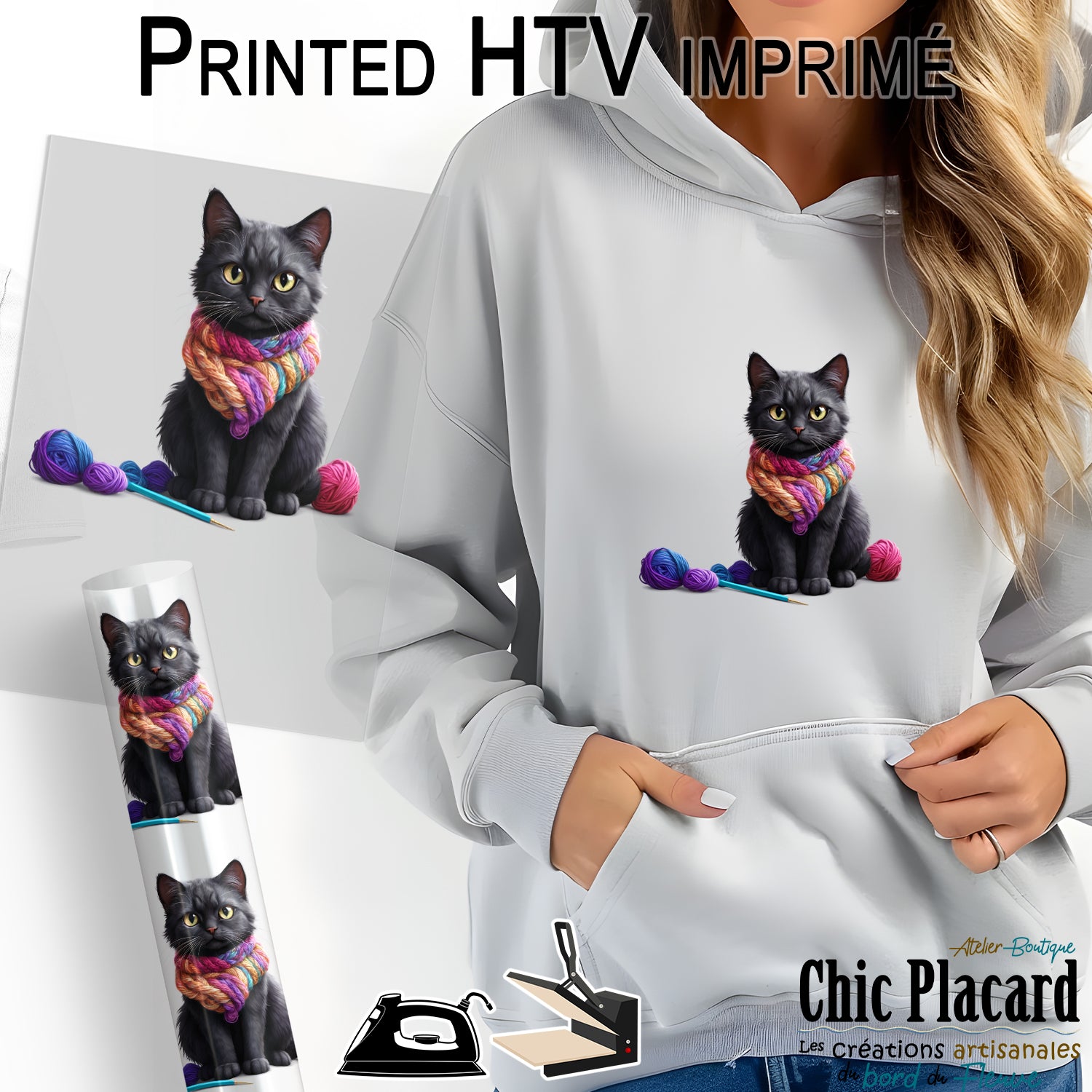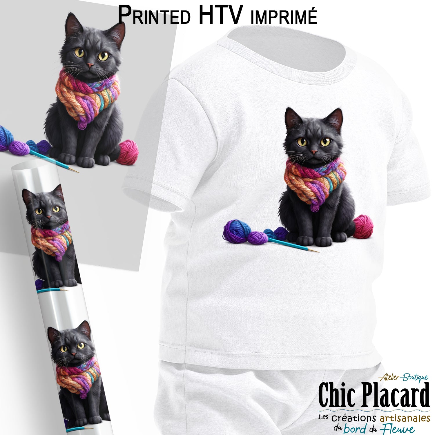 Chat noir & laine - HTV imprimé