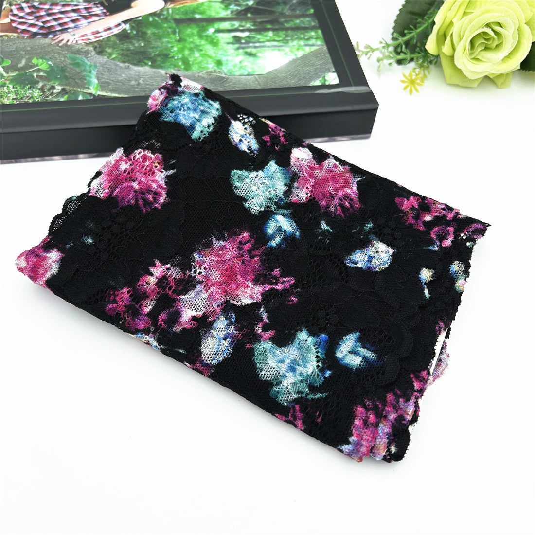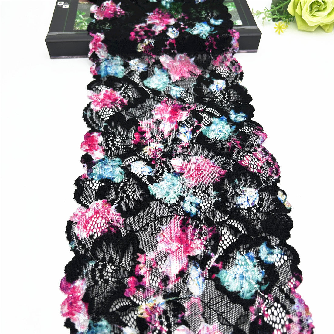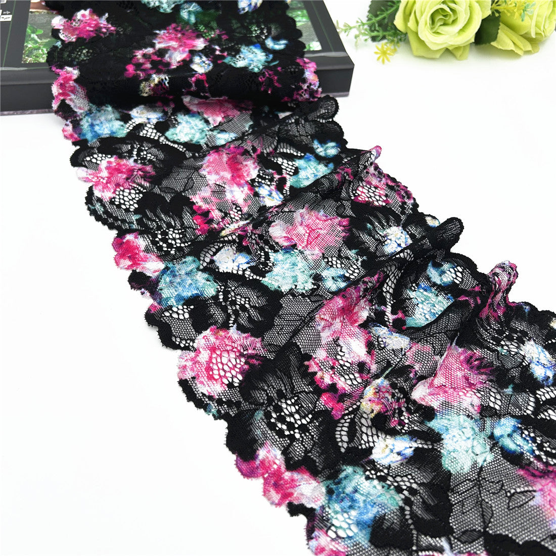 Dentelle brodée noire aux fleurs vives 18cm (au 1/2m)